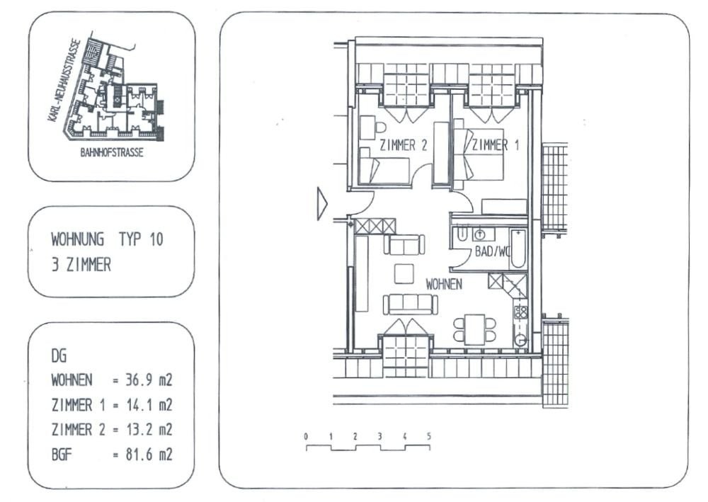 Die Wohnung befindet sich im 6. OG und ist bequem mit dem Lift erreichbar.