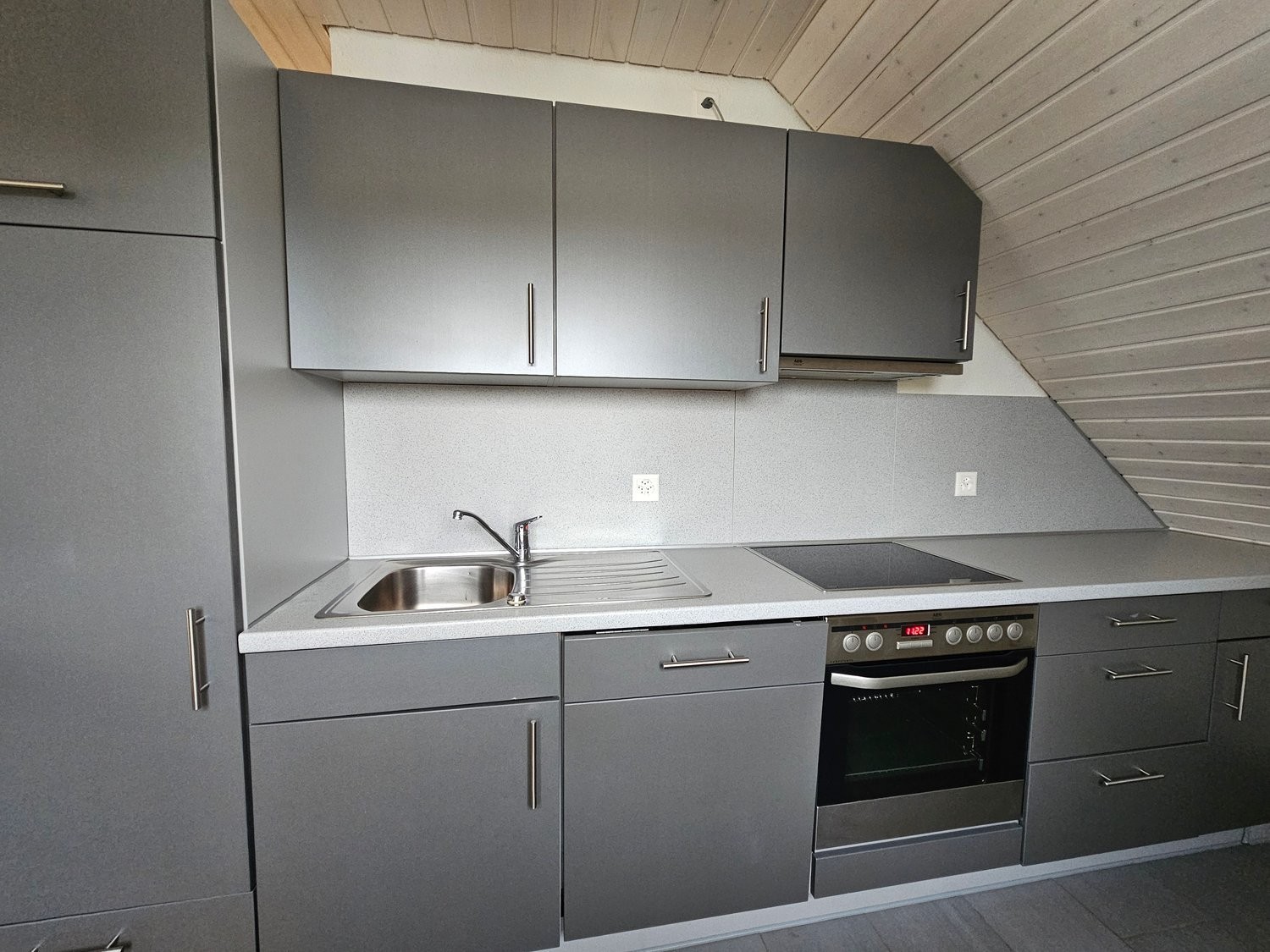 Praktische Küche , Glaskeramik und Plattenboden.