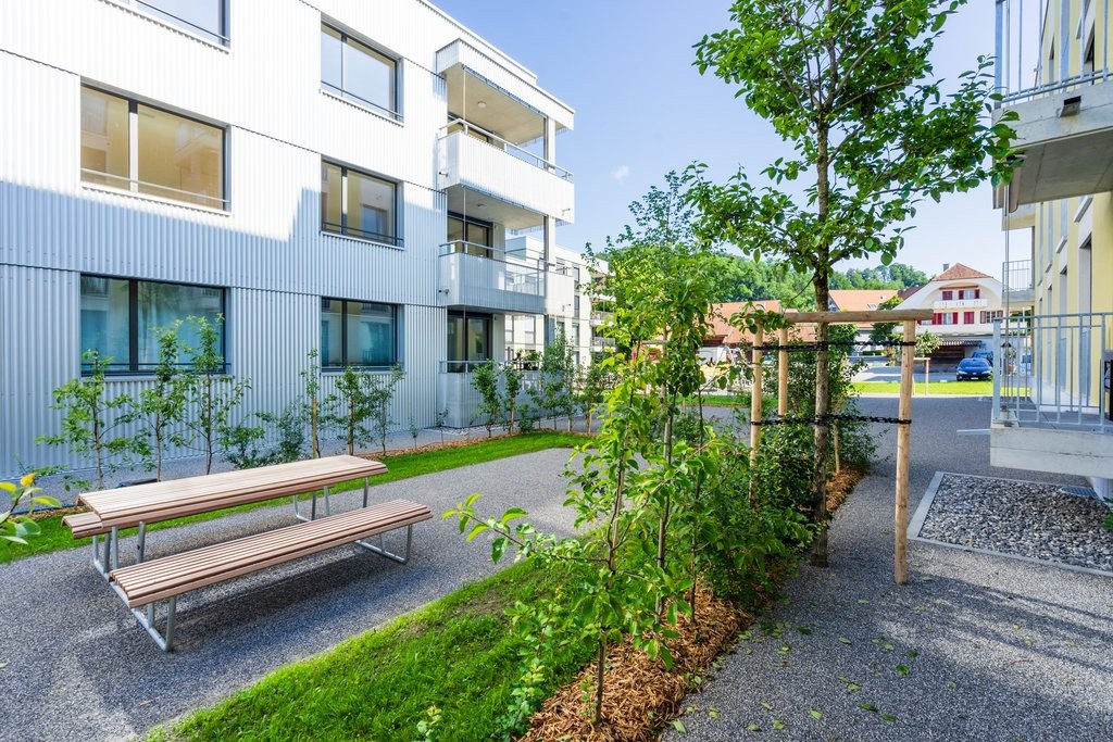 In der Überbauung sind Hochbeete zur allgemeinen Nutzung sowie grosse Spielflächen vorhanden.