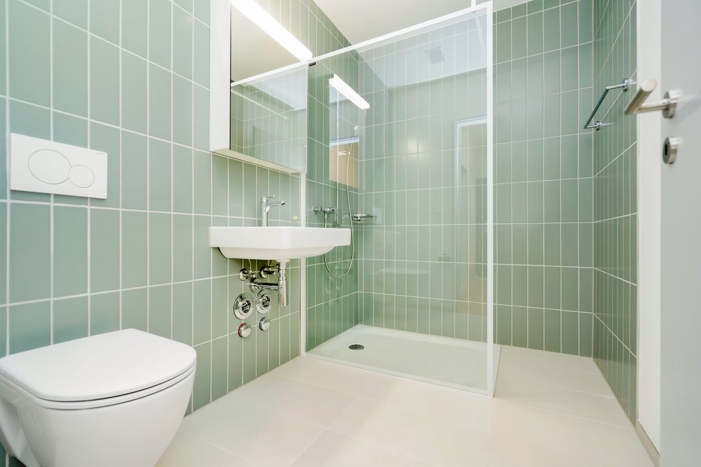 Badezimmer mit schwellenloser Dusche und Glastrennwand