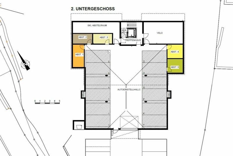 Die Garage befindet sich im 2. Untergeschoss des Hauses und ist bequem von Süden der Liegenschaft befahrbar.