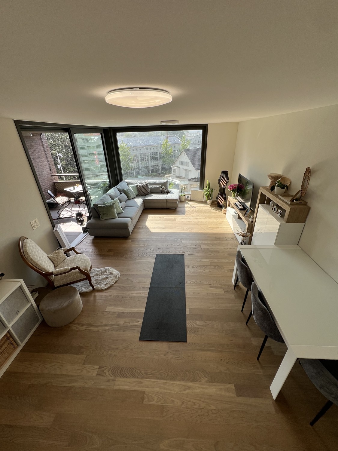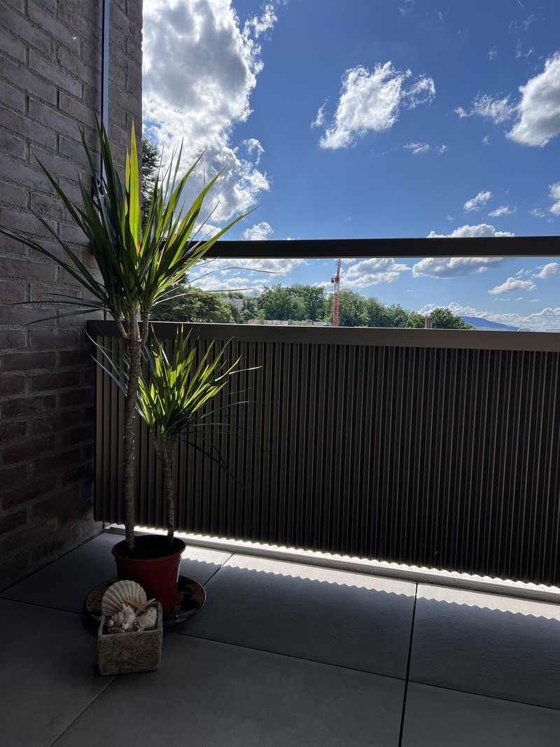 Der grosse, gedeckte Balkon lädt zu entspannten Grillabenden mit Freunden und Familie ein. Dank Überdachung ist er auch in den Wintermonaten wunderbar nutzbar – ein zusätzlicher Wohnraum im Freien.