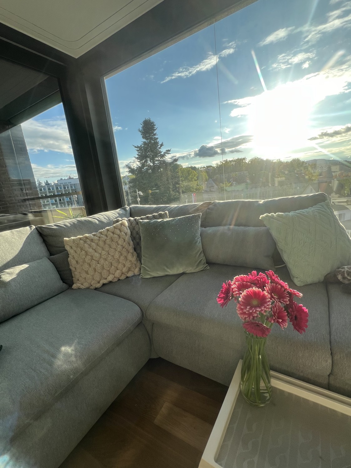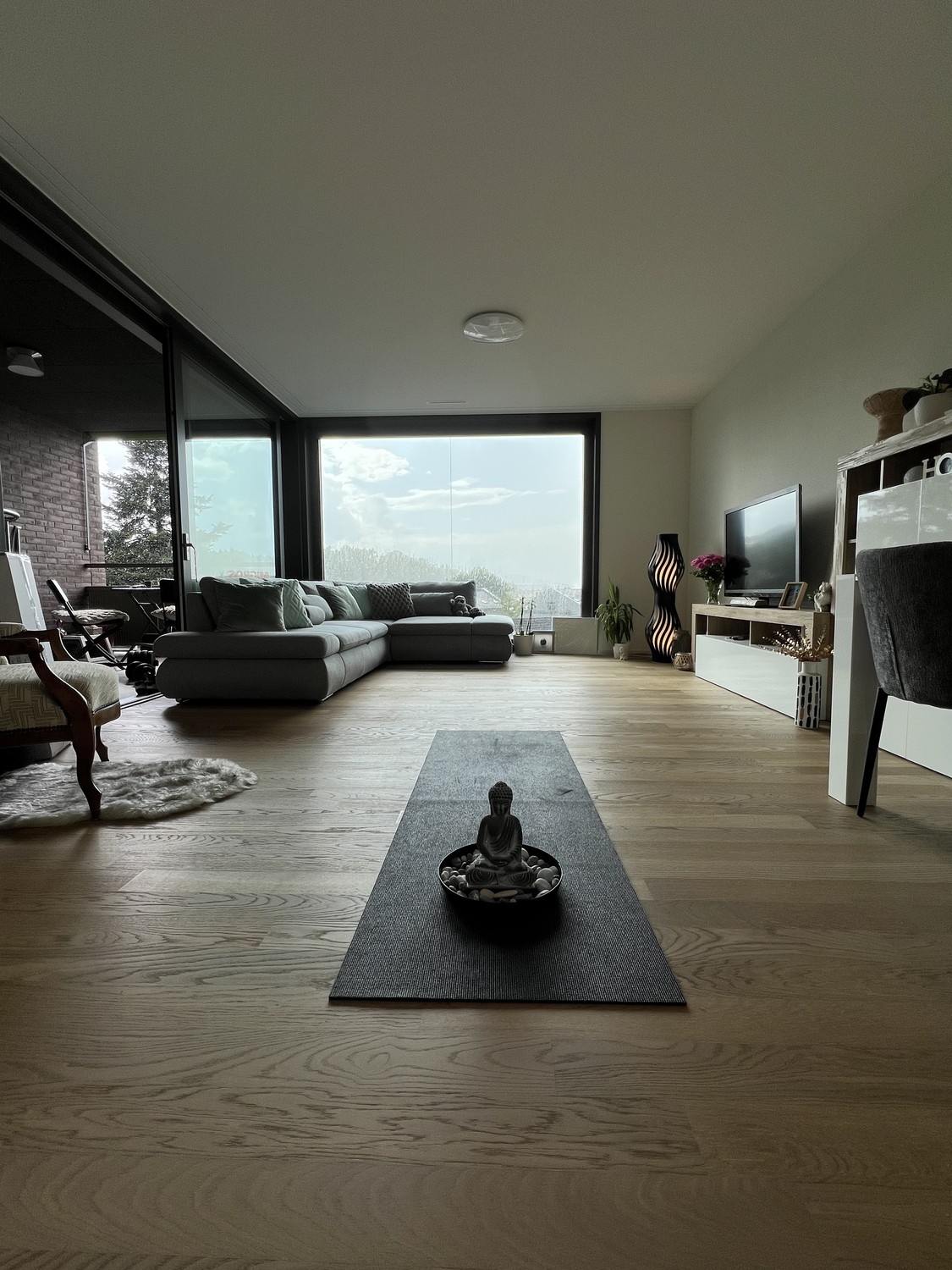 Das absolute Herzstück ist der gigantische Living Room mit beeindruckendem Panoramafenster. Hier verschmelzen Grosszügigkeit und Gemütlichkeit auf einzigartige Weise.
