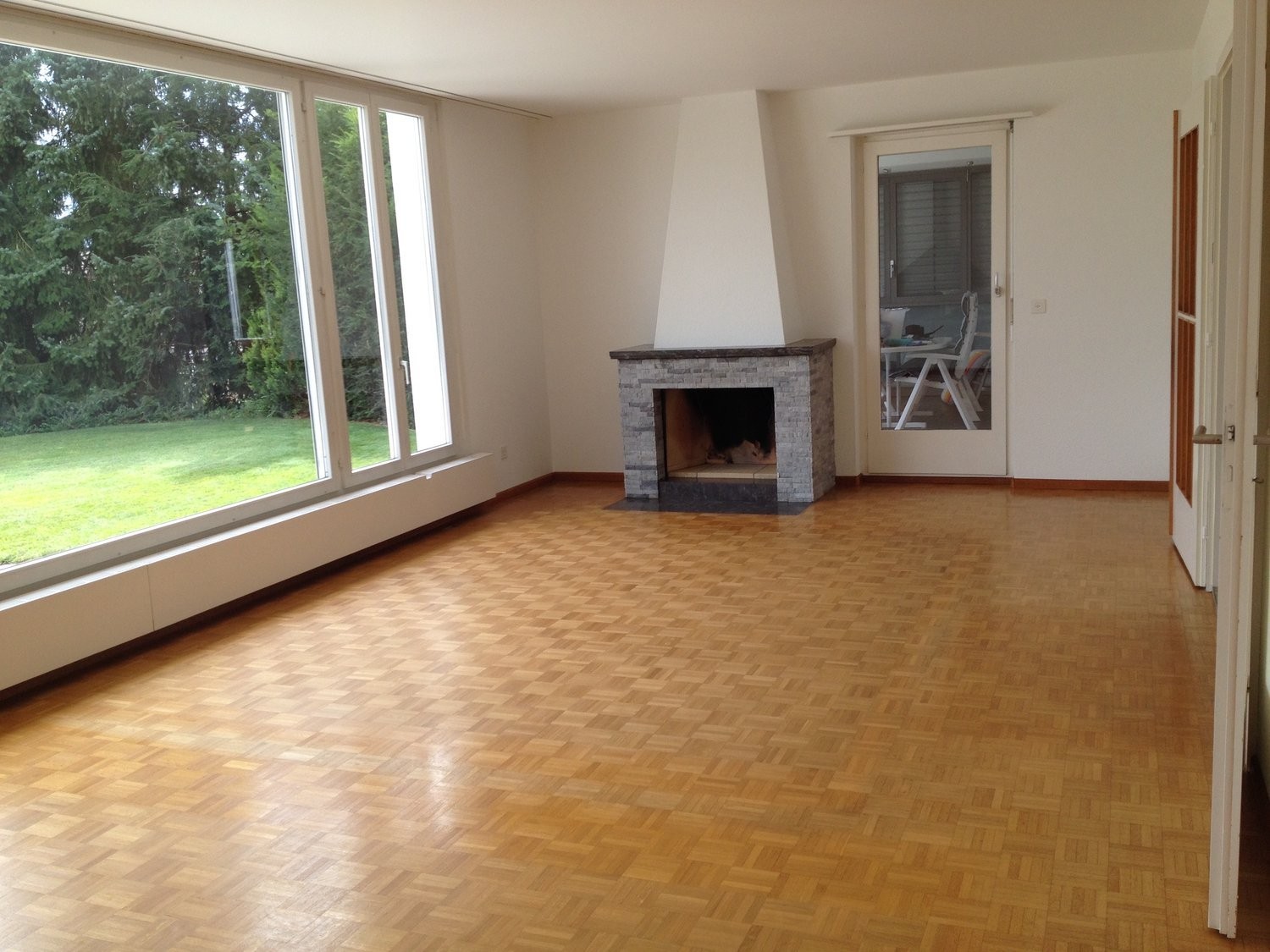 EG: Grosszügiges Wohnzimmer mit Cheminée, Küche mit separatem Essbereich, 4 Schlafzimmer, Bad/Dusche/WC, sep. WC/Lavabo, Wintergarten mit Cheminée