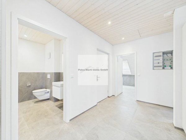 Hochwertige Plattenböden in Wohnzimmer, Korridor und Nasszellen
