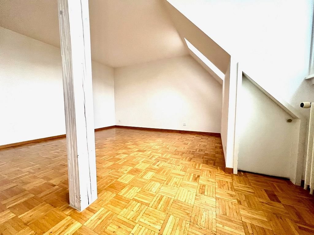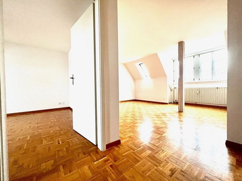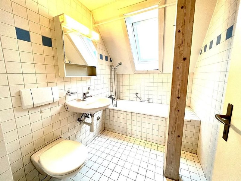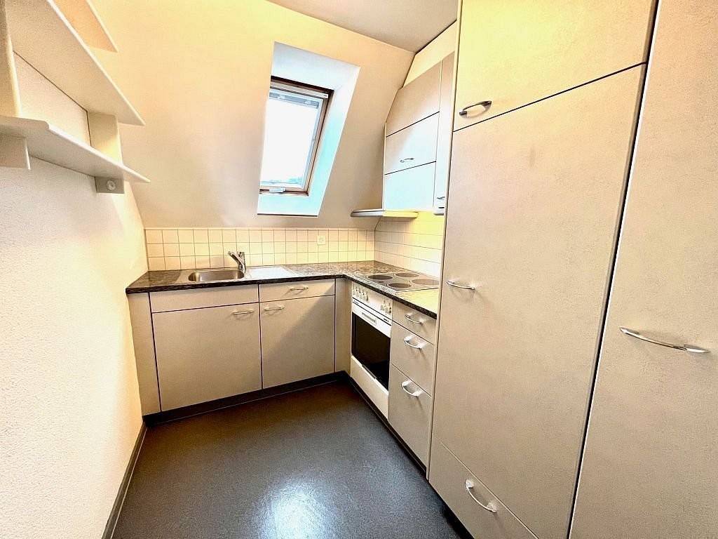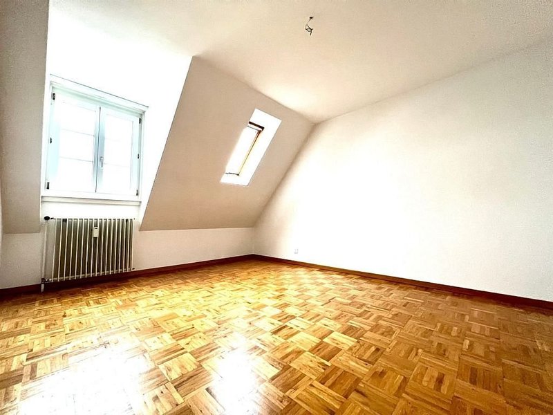 Wir vermieten per 01.06.2026 eine charmante helle Dachwohnung. Sie verfügt über ein offenes und gemütliches Wohnzimmer, dass mit einem praktischen Stauraum in der Dachschräge ausgestattet ist. Die Zimmer sind mit einem Parkettboden versehen und die Küche sowie das Badezimmer mit einem Plattenboden. Die Küche ist mit einem Glaskeramikkochfeld ausgestattet und bietet genügend Platz zum Kochen. Im Korridor befindet sich ein Wandschrank, der zusätzlichen Stauraum bietet. Ein Kellerabteil gehört ebenfalls zur Wohnung mit dazu. Ein Balkon ist nicht vorhanden.