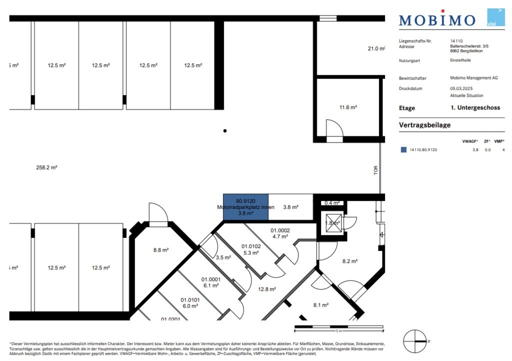 Per sofort oder nach Vereinbarung vermieten wir Motorradparkplätze in der Tiefgarage an der Baltenschwilerstrasse 3-5 in Bergdietikon.