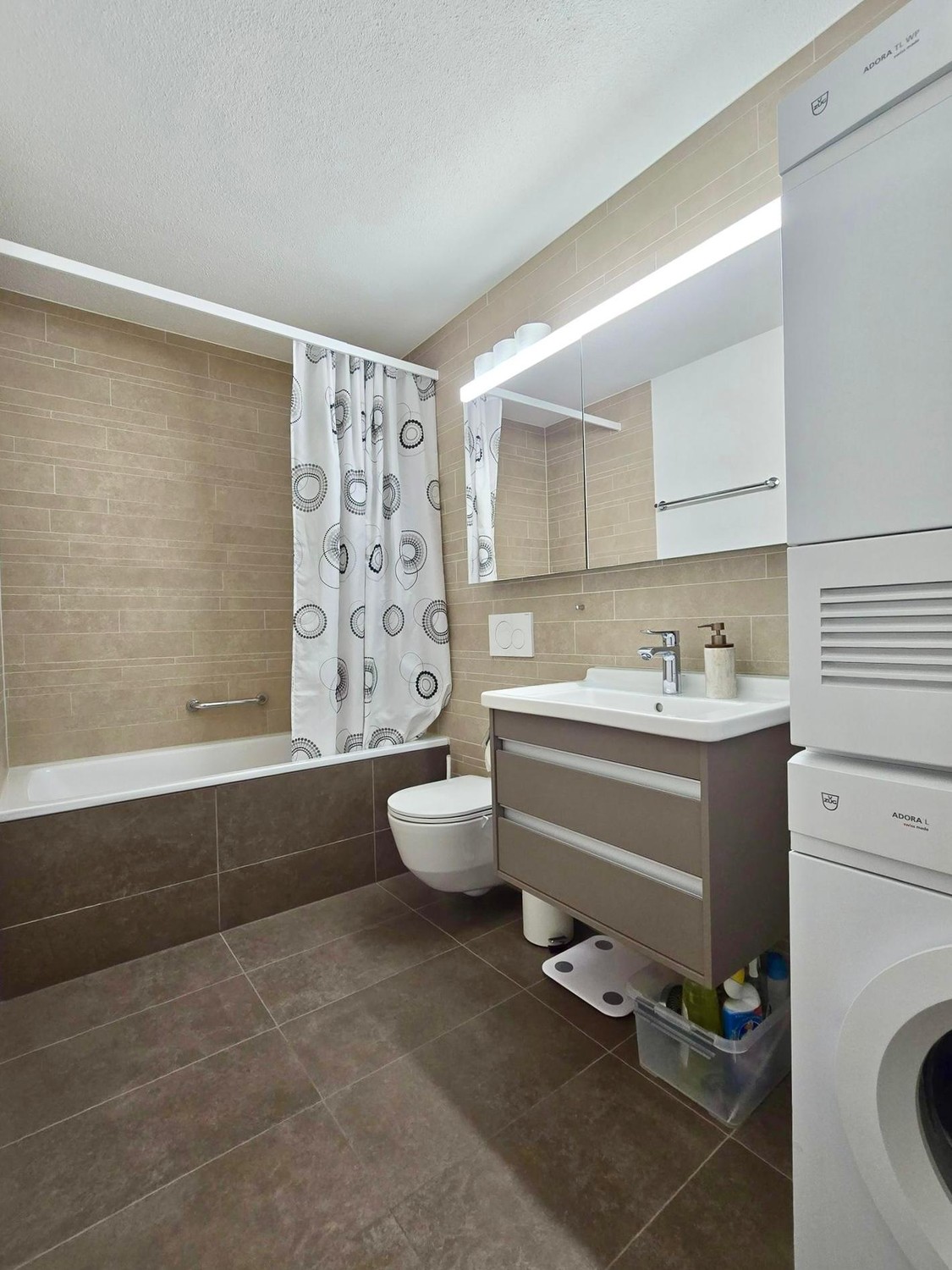Private washing machine and tumble dryer in the bathroom