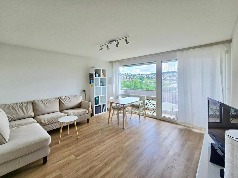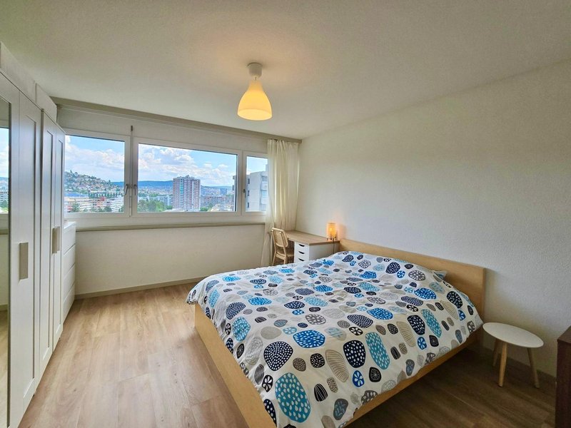 This bright 64 sqm apartment on the 13th floor offers fantastic views towards Hönggerberg and Zurich city center. With two full bedrooms and excellent transport connections right at your doorstep, it is ideal for professionals, couples or small families seeking urban convenience with open views.
