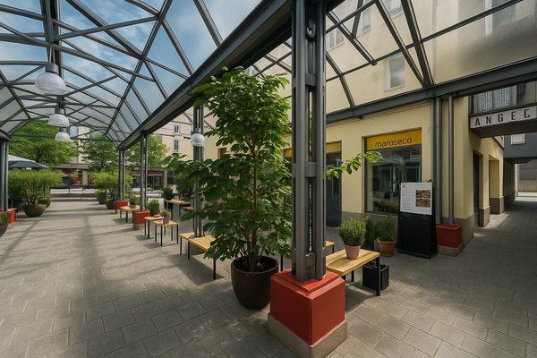 Die Bandwiesstrasse – eine der wichtigsten Einkaufsachsen Rütis – liegt in unmittelbarer Nähe und bietet über 30 Geschäfte, darunter Coop, Migros, Denner sowie verschiedene Fachmärkte. Damit ist nicht nur für die tägliche Versorgung gesorgt, sondern auch für eine lebendige Umgebung mit hoher Besucherfrequenz – ein klarer Standortvorteil für Unternehmen.