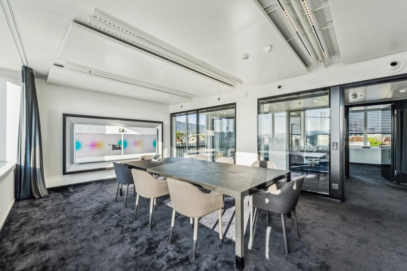 Per sofort oder nach Vereinbarung vermieten wir an exklusiver Lage rund 975 m² ausgebaute Büroflächen verteilt auf 4 Etagen. Die drei Regelgeschosse vom 6. bis zum 8. Obergeschoss liegen bei ca. 275 m² und der Top Floor im 9. Obergeschoss bei ca. 140 m². Als Mieter des Top Floors geniessen Sie auf der rund 125 m² grossen Terrasse eine atemberaubende Sicht auf den Zürichsee, die Berglandschaft und die Stadt Zürich.