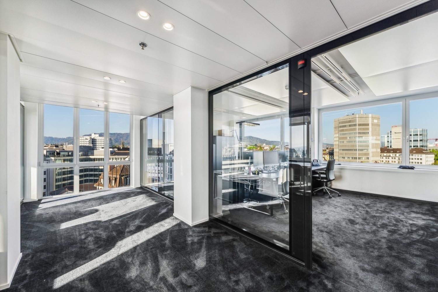Per sofort oder nach Vereinbarung vermieten wir an exklusiver Lage rund 975 m² ausgebaute Büroflächen verteilt auf 4 Etagen. Die drei Regelgeschosse vom 6. bis zum 8. Obergeschoss liegen bei ca. 275 m² und der Top Floor im 9. Obergeschoss bei ca. 140 m². Als Mieter des Top Floors geniessen Sie auf der rund 125 m² grossen Terrasse eine atemberaubende Sicht auf den Zürichsee, die Berglandschaft und die Stadt Zürich.