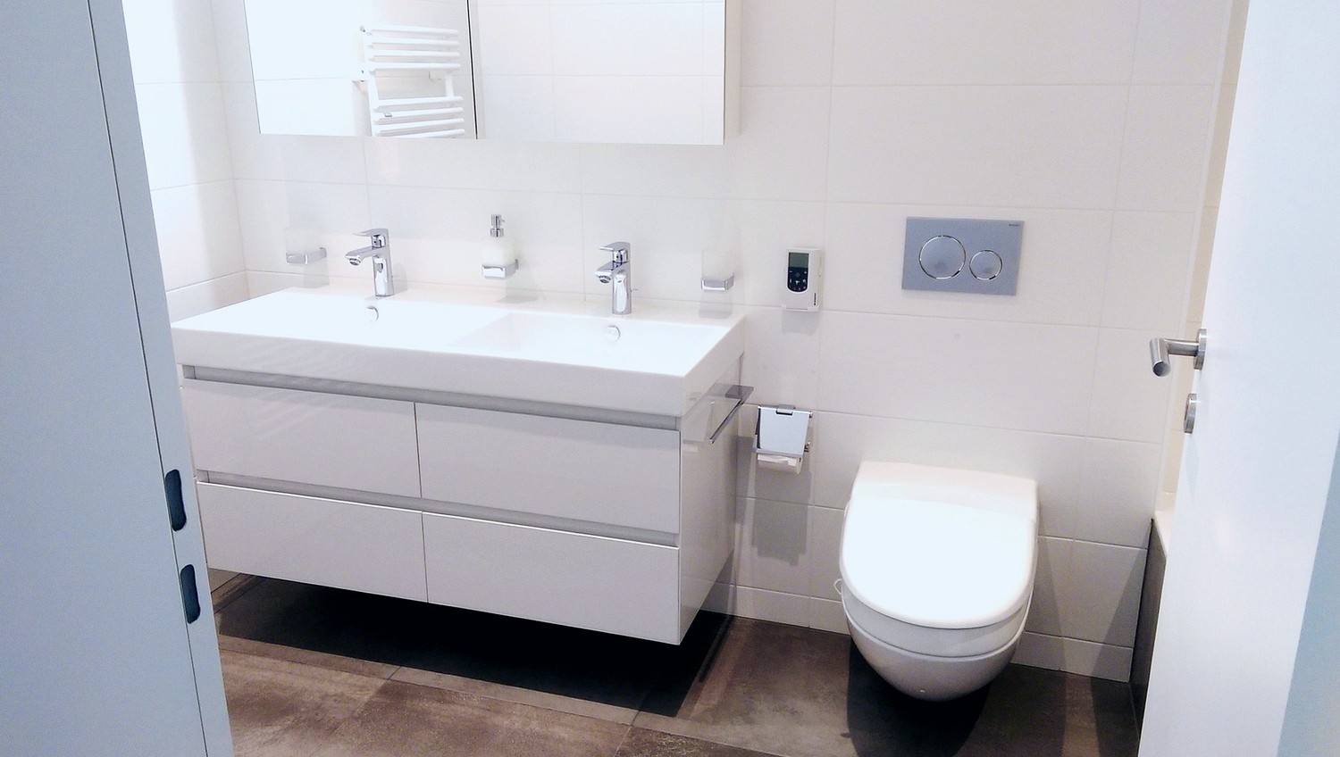 Sanftes Laminat in den 2 Schlafzimmern. Moderne, durchdachte Architektur mit besten Materialien.