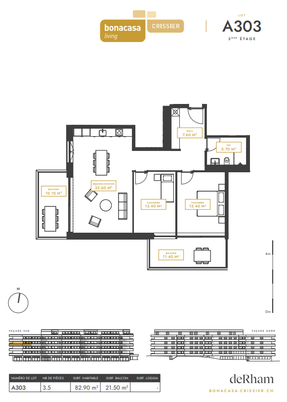 Ce nouvel immeuble propose des appartements de 2.5 pièces, 3.5 pièces et 4.5 pièces, offrant des espaces fonctionnels, lumineux et optimisés, pensés pour un confort de vie au quotidien.