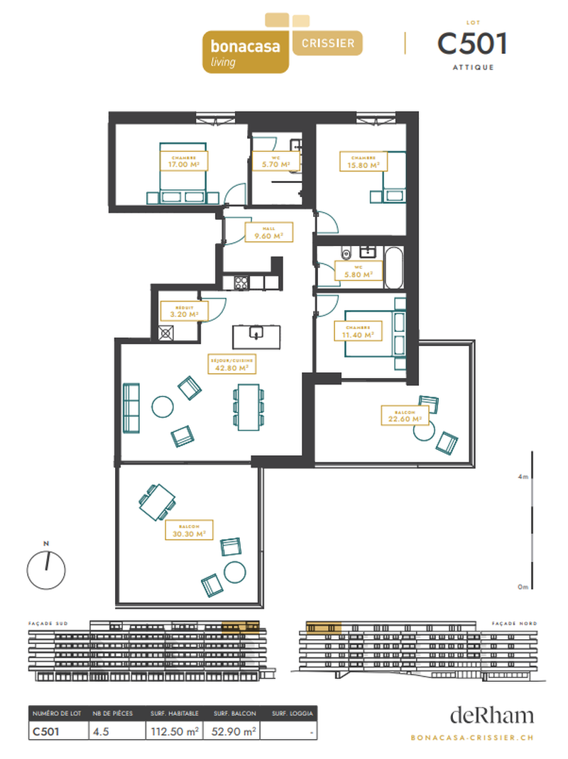 Ce nouvel immeuble propose des appartements de 2.5 pièces, 3.5 pièces et 4.5 pièces, offrant des espaces fonctionnels, lumineux et optimisés, pensés pour un confort de vie au quotidien.