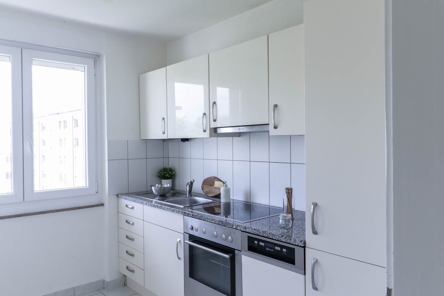 - Küche mit Geschirrspüler und grosszügigem Kühlschrank