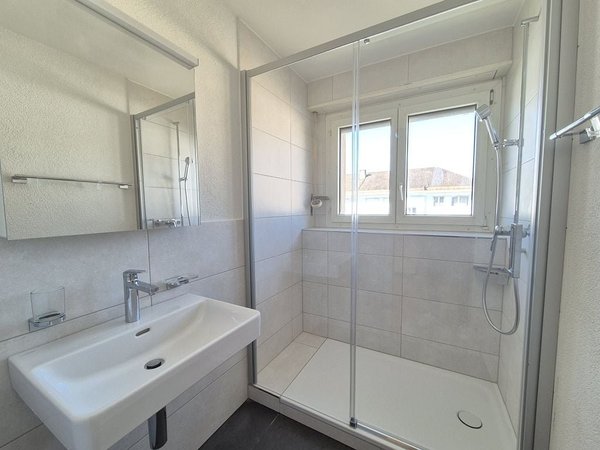 - Badezimmer mit Dusche und Duschtrennwand