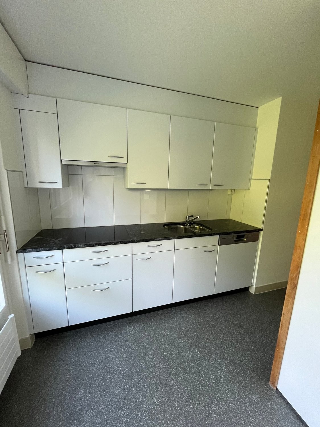 Helle, moderne Küche mit Geschirrspüler und Glaskeramikkochfeld - Kochen macht hier richtig Freude