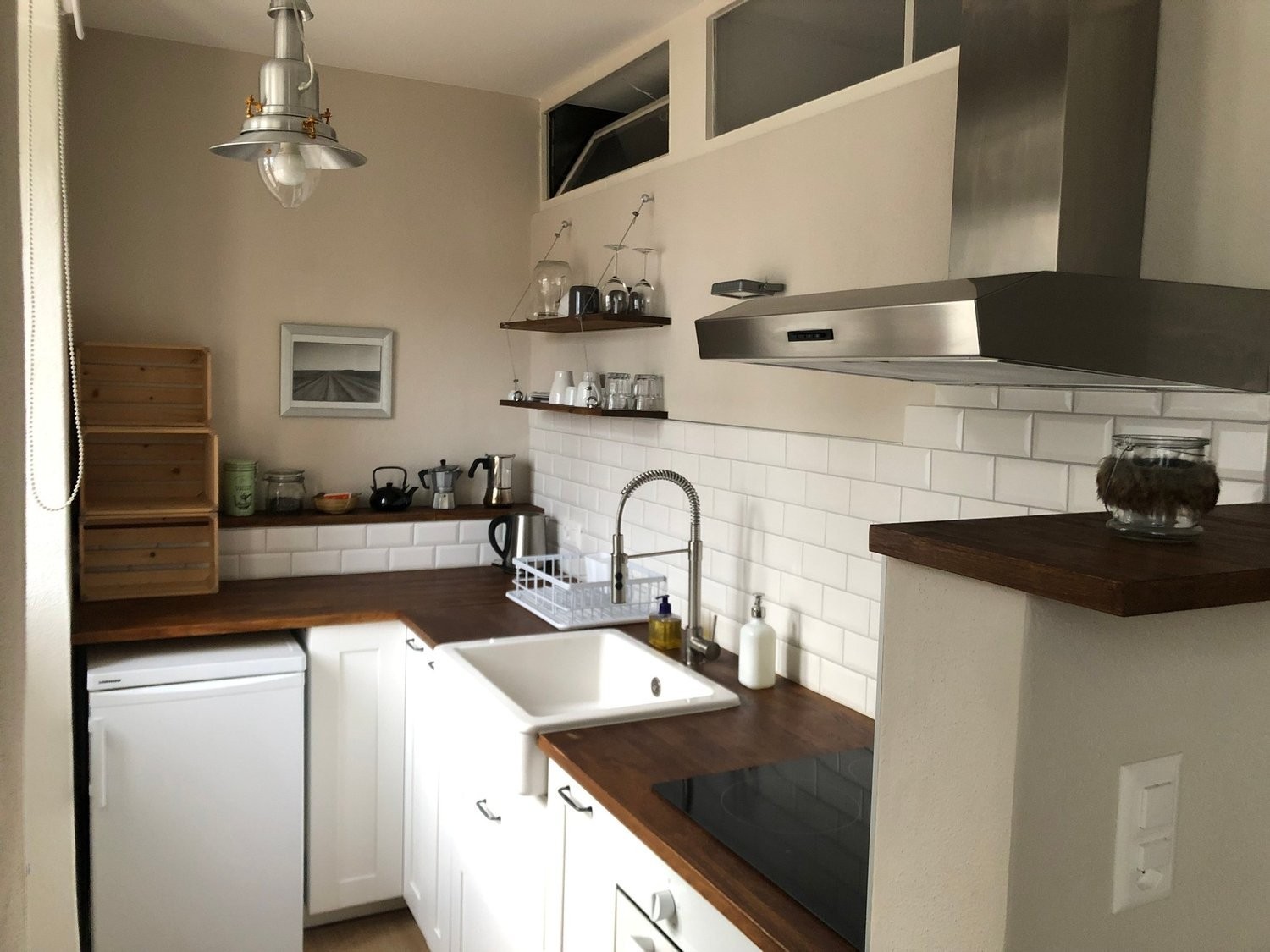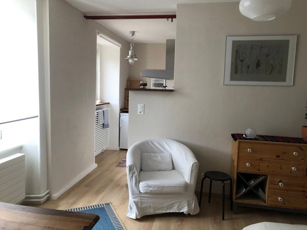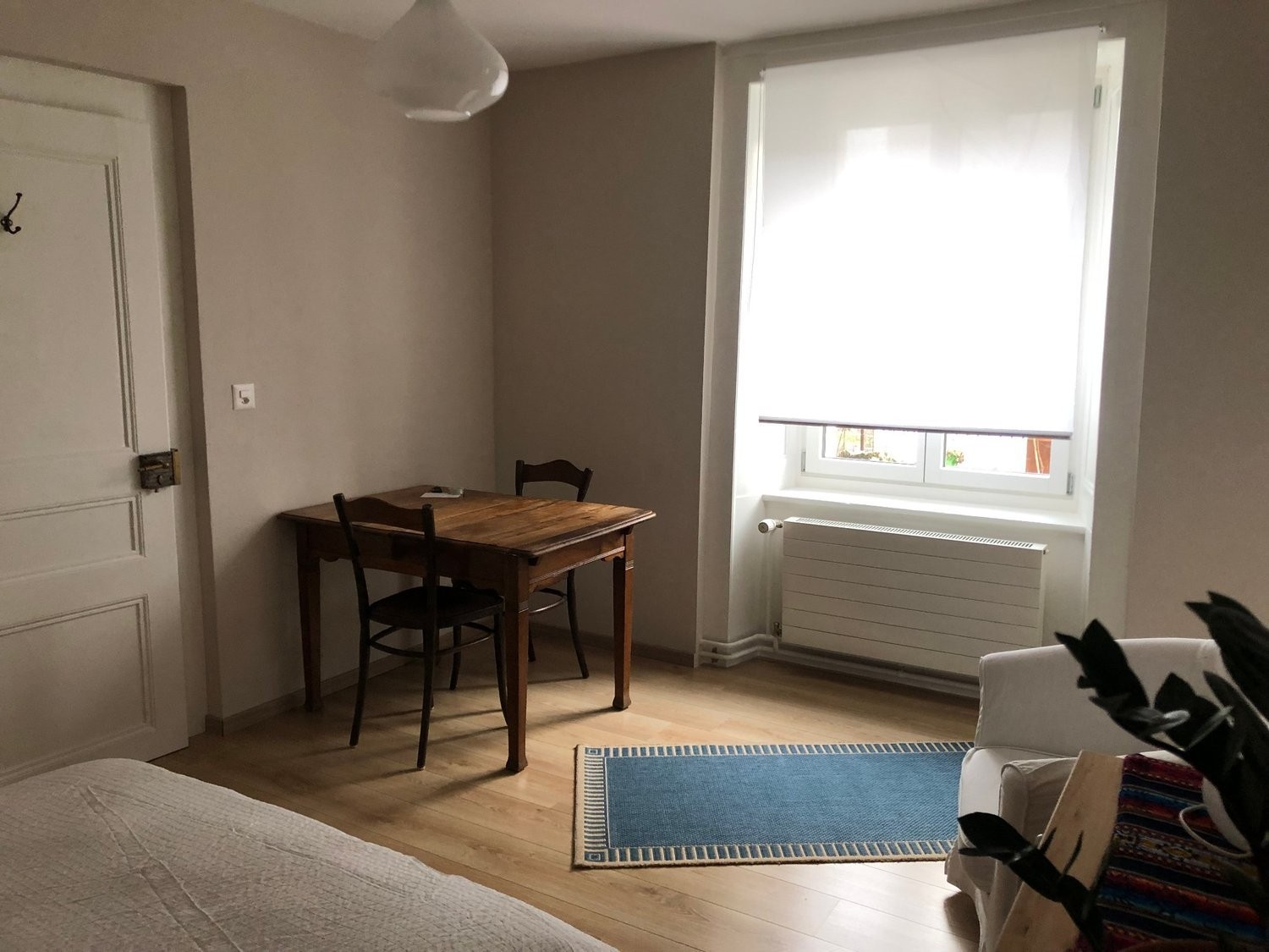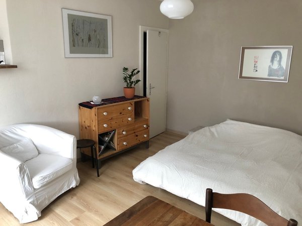 Joli studio entièrement meublé avec cachet d'environ 20m2. Cuisine agencée, séjour-chambre à coucher, salle de bain avec WC, baignoire et dressing.