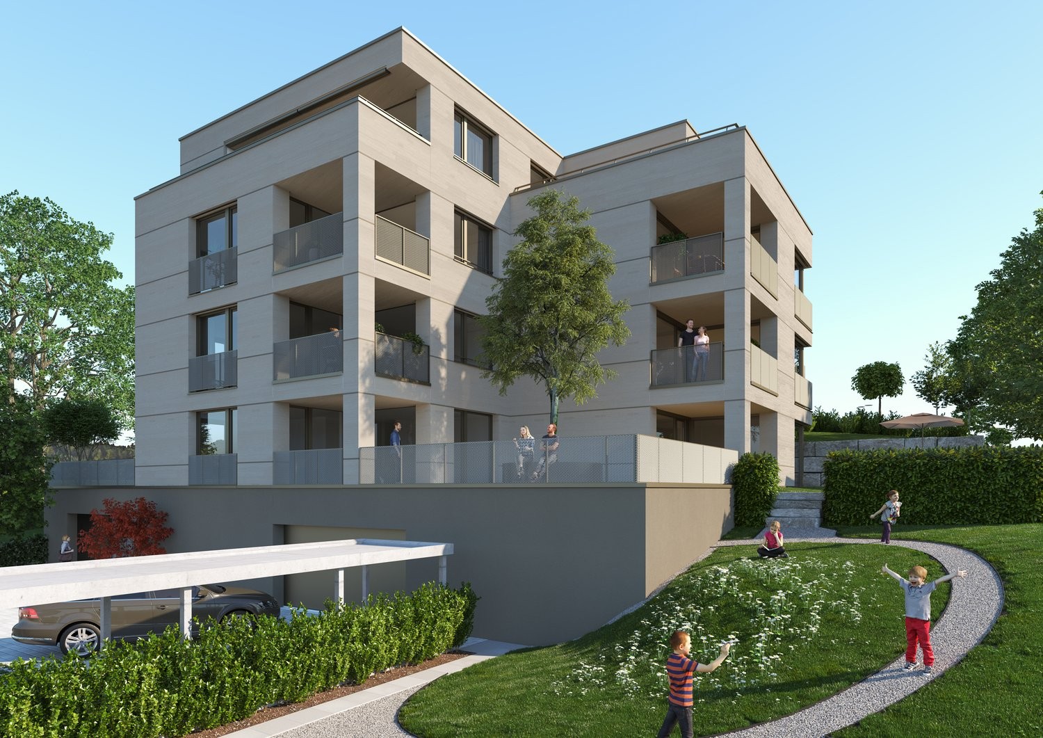 Ein Einstellplatz kann für CHF 140.00 pro Monat dazu gemietet werden.