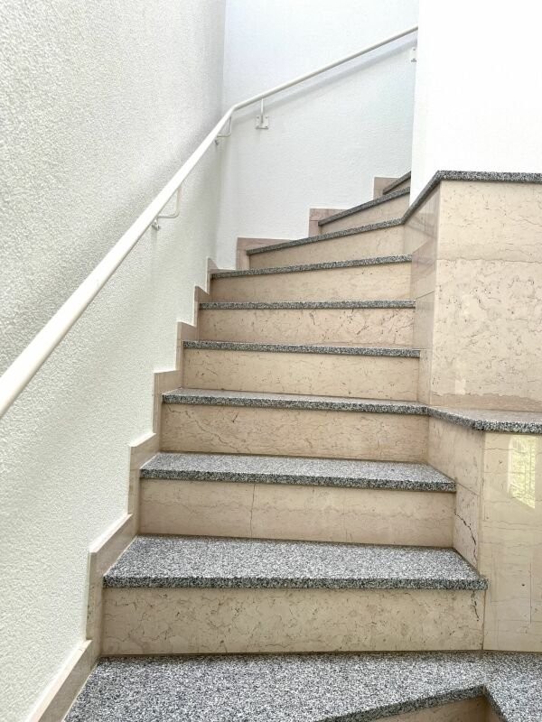 Die Schlafräume sind mit Parkettboden ausgestattet und die Wohnräume mit Marmor.