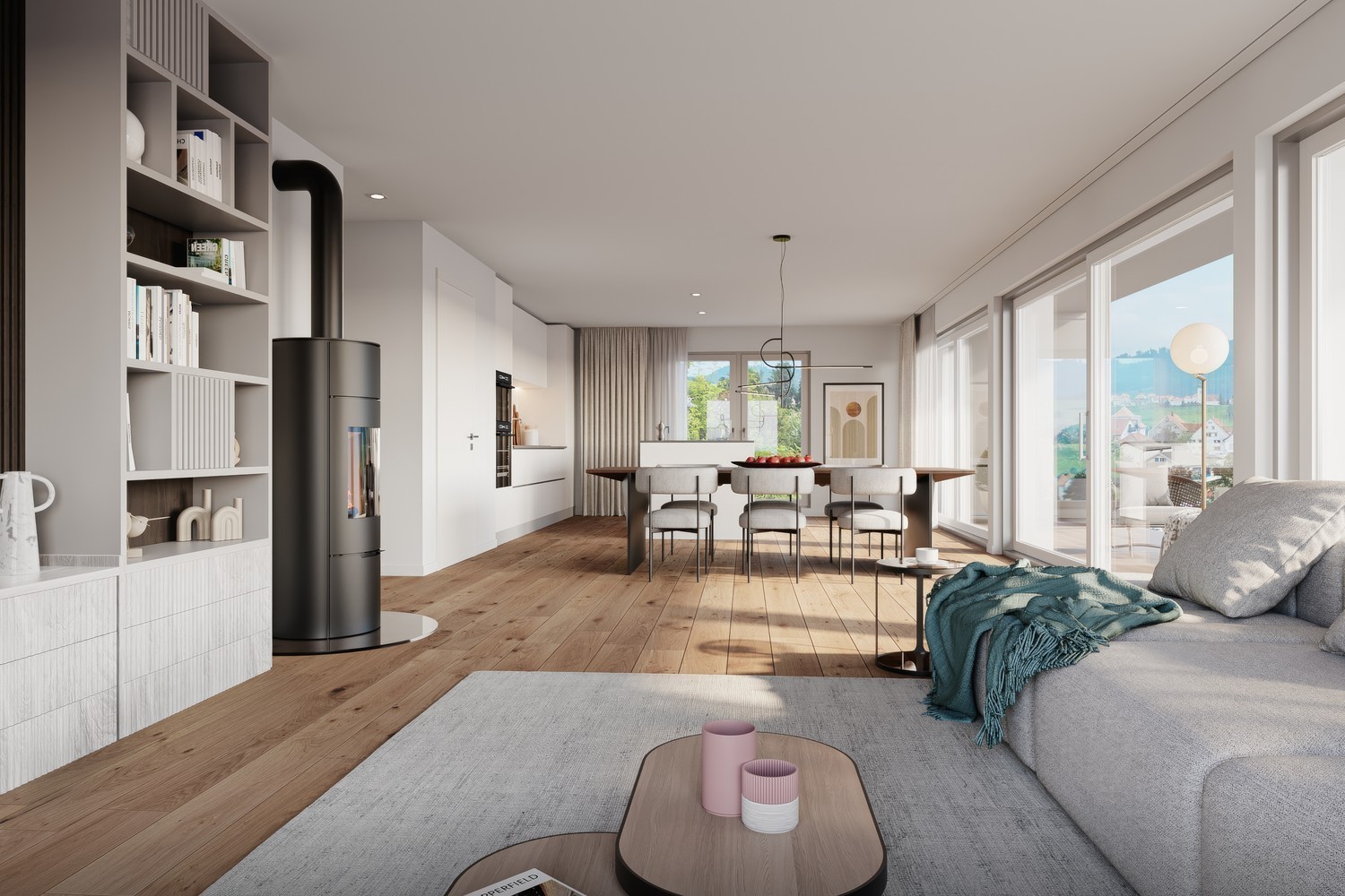 Offener Wohn- /Essbereich mit grosser Fensterfront und optimalem Lichteinfall