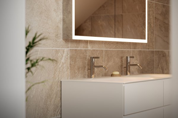 Zwei Nasszellen pro Wohnung, mit Badewanne und / oder Dusche; Kleinwohnungen mit Dusche und separater Gästetoilette