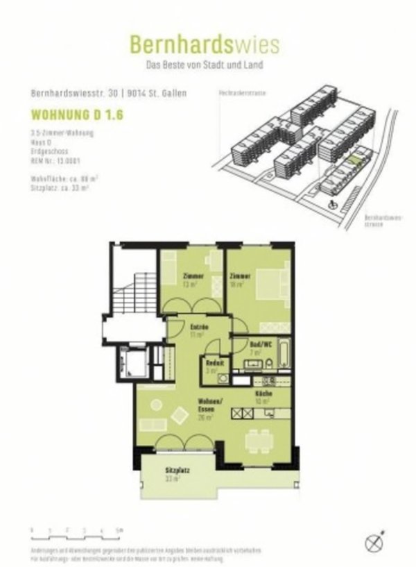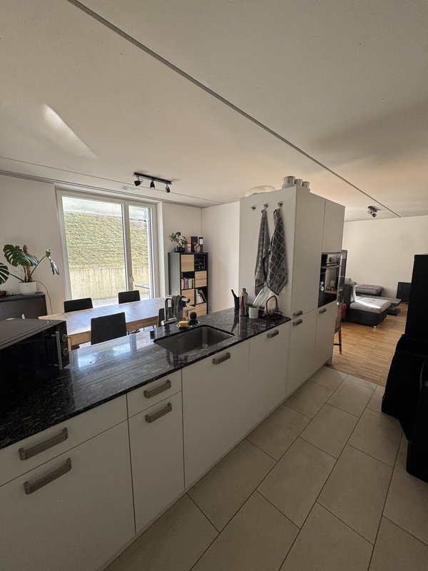 Die Wohnung ist 88 m² groß, modern (Minergie-Standard), hell und verfügt über eine offene Küche, eine Terrasse sowie Waschmaschine und Tumbler in der Wohnung.
