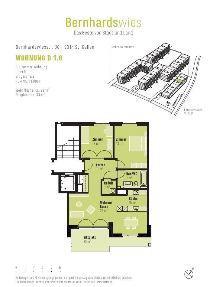 Direkt beim Bahnhof Haggen vereint Bernhardswies das Beste von Stadt und Land und ist schnell und bequem erreichbar. Parkplätze, S-Bahn- und Bushaltestellen liegen vor der Haustüre. Diverse Einkaufmöglichkeiten sind zu Fuss in ca. 5 Minuten erreichbar.