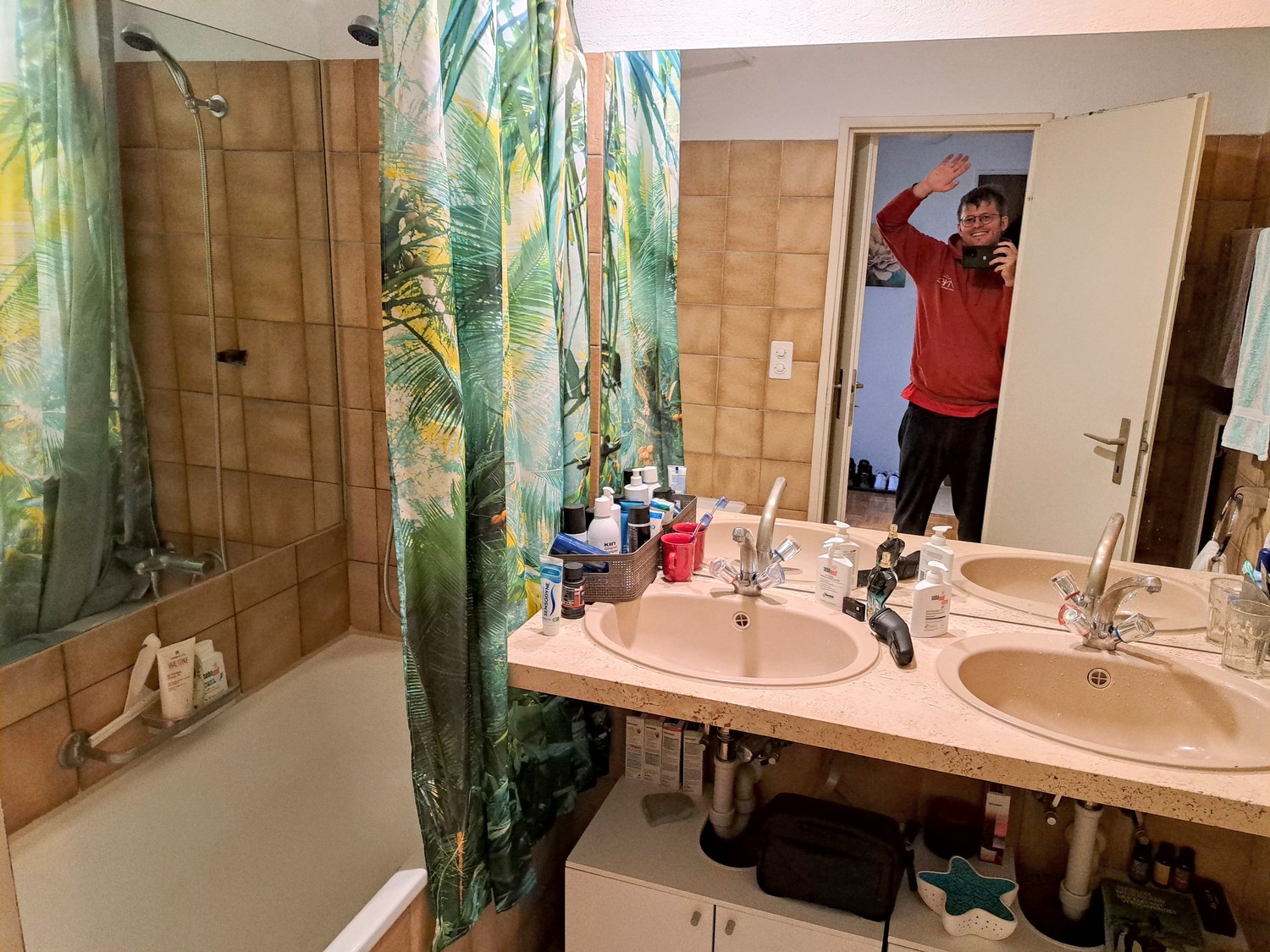 Ein besonderes Highlight ist der zweite Stock mit grossem Gästesofa, Homegym, Gemeischaftsspiele sowie Platz für Allerlei. Dort ist auch aktuell das Homeoffice meines Mitbewohners, das ggf. übernommen werden kann. Waschmaschine und Tumbler teilen wir uns mit den anderen 8 Parteien des Hauses, was gut klappt und man sich auch spontan noch zum Waschen eintragen kann.