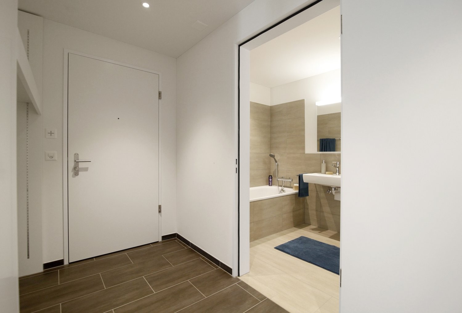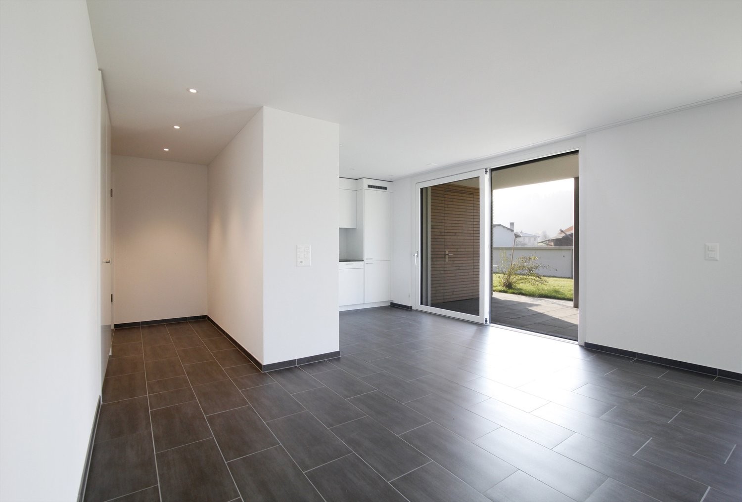 - Wohnzimmer, Korridor, Küche und Bad mit Plattenboden