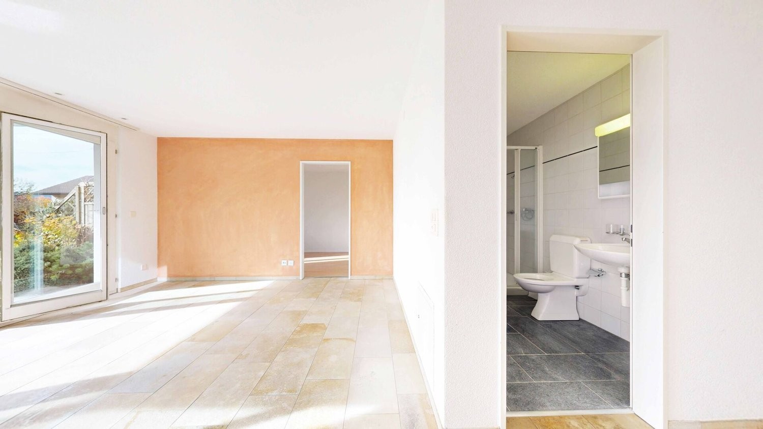 Die Wohnung verfügt über 2,5 Zimmer, eine praktische Küche, ein Badezimmer mit Toilette. Die gepflegte Innenausstattung mit Plattenboden und hellen Materialien verleiht dem Raum ein zeitloses Erscheinungsbild. Dank dem effizienten Grundriss bietet die Wohnung optimalen Wohnkomfort auf kompakter Fläche.