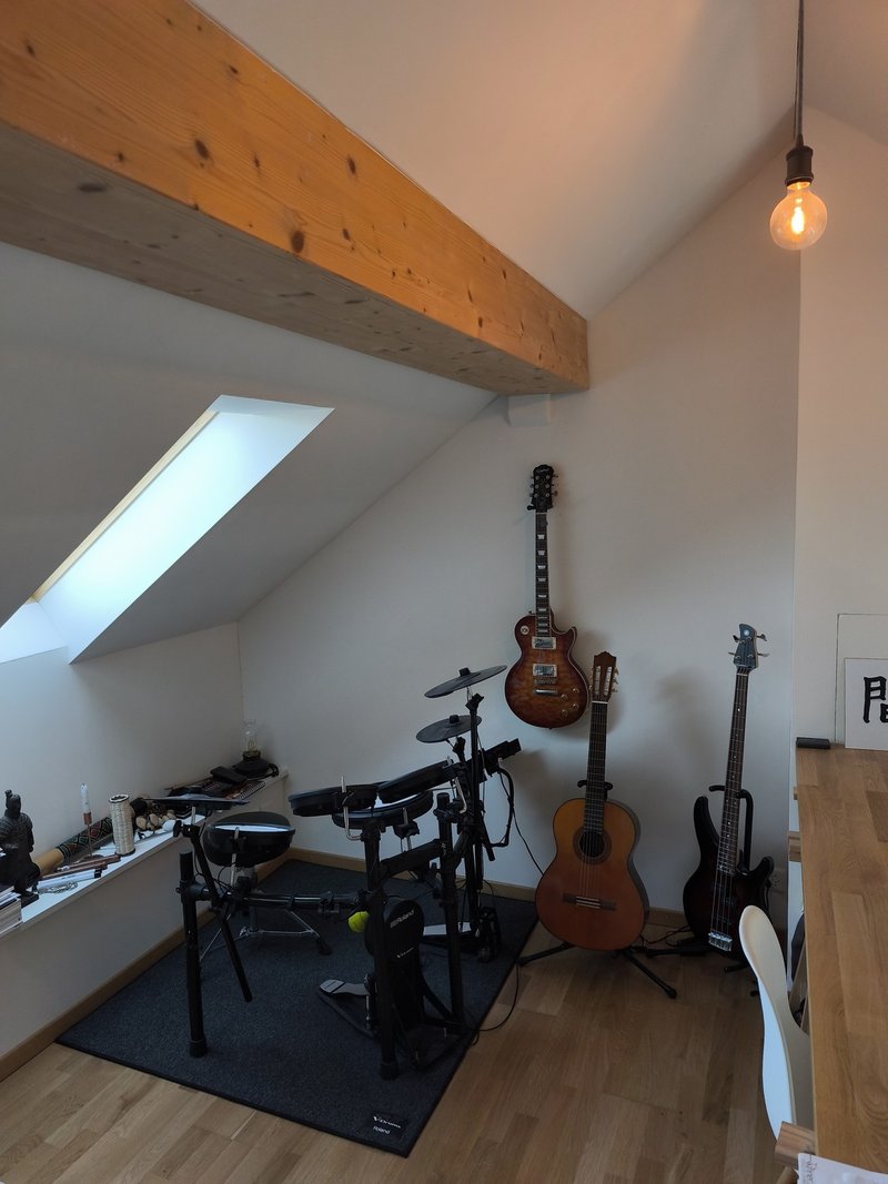Highlight ist dieses Schlafzimmer mit Maisonetteraum mit oberem Arbeits-/Kreativbereich. Nutzung der Instrumente nach Absprache möglich.