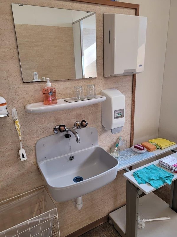 Zur gemeinsamen Benützung hat es WC-Anlagen und einen Wasseranschluss mit Waschtrog.