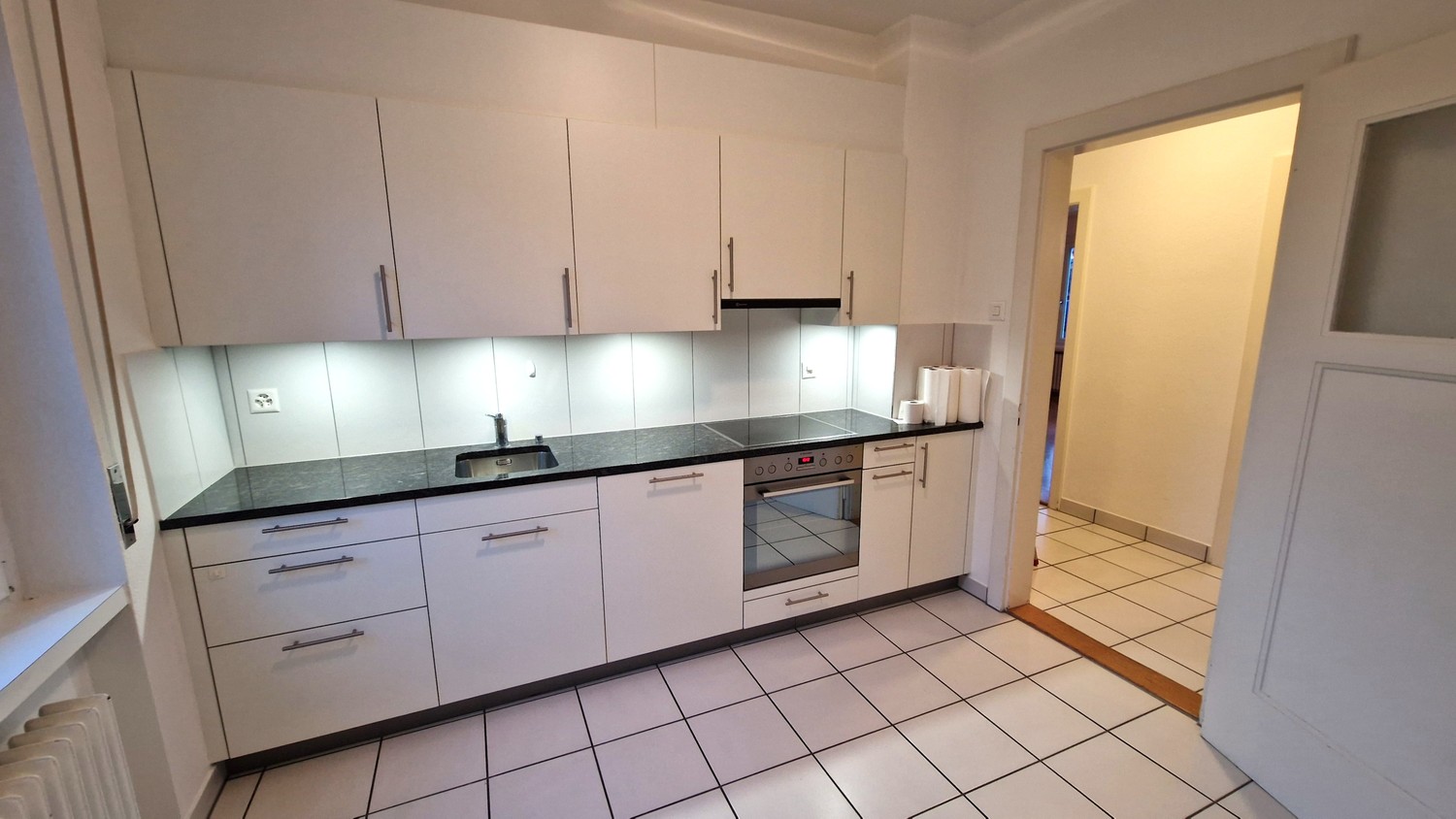 Die Zimmer sind mit 13 bis 21m2 sehr gross, hell und mit rund 2.60m Raumhöhe schön hoch. Die Küche wurde 2021 erneuert und bietet Platz für einen Esstisch. Das Badezimmer mit Dusche ist praktisch, aber schon älter.
