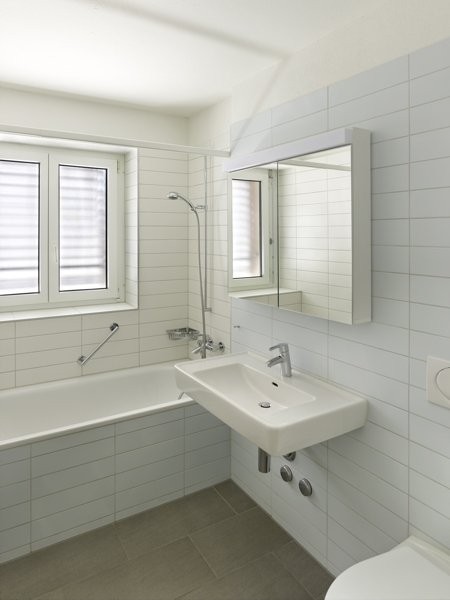-Badezimmer mit Badewanne und Tageslicht