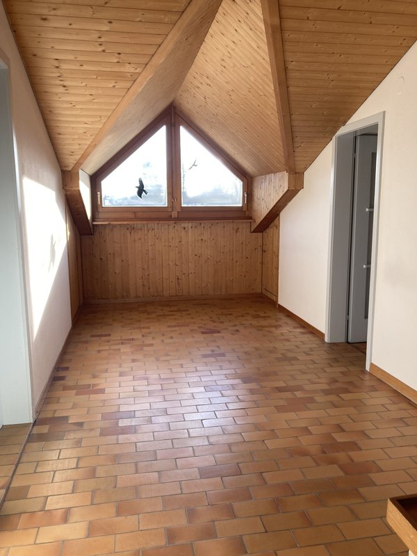 Wir vermieten in einem familienfreundlichen Zweifamilienhaus, direkt am Wald und trotzdem an verkehrsgünstiger Lage (in fünf Minuten ist der Autobahnzubringer erreichbar), eine grosszügige Maisonettewohnung.