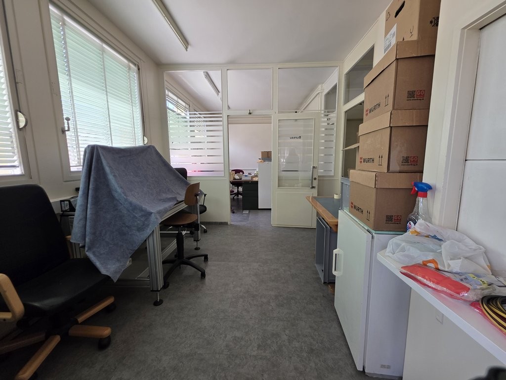 Grand atelier lumineux, deux bureaux, cuisine équipée (cafétéria) et trois WC avec lave-mains et une douche.