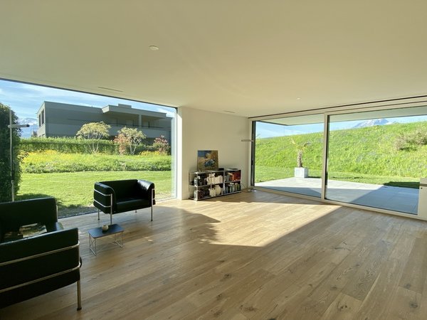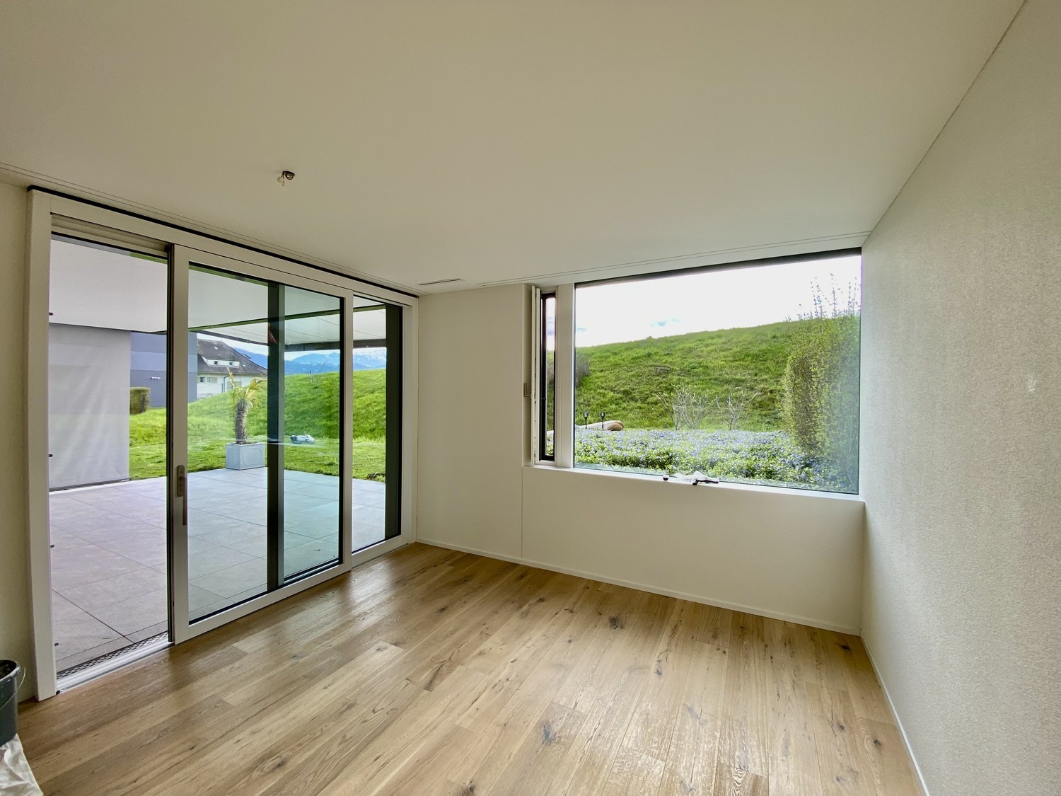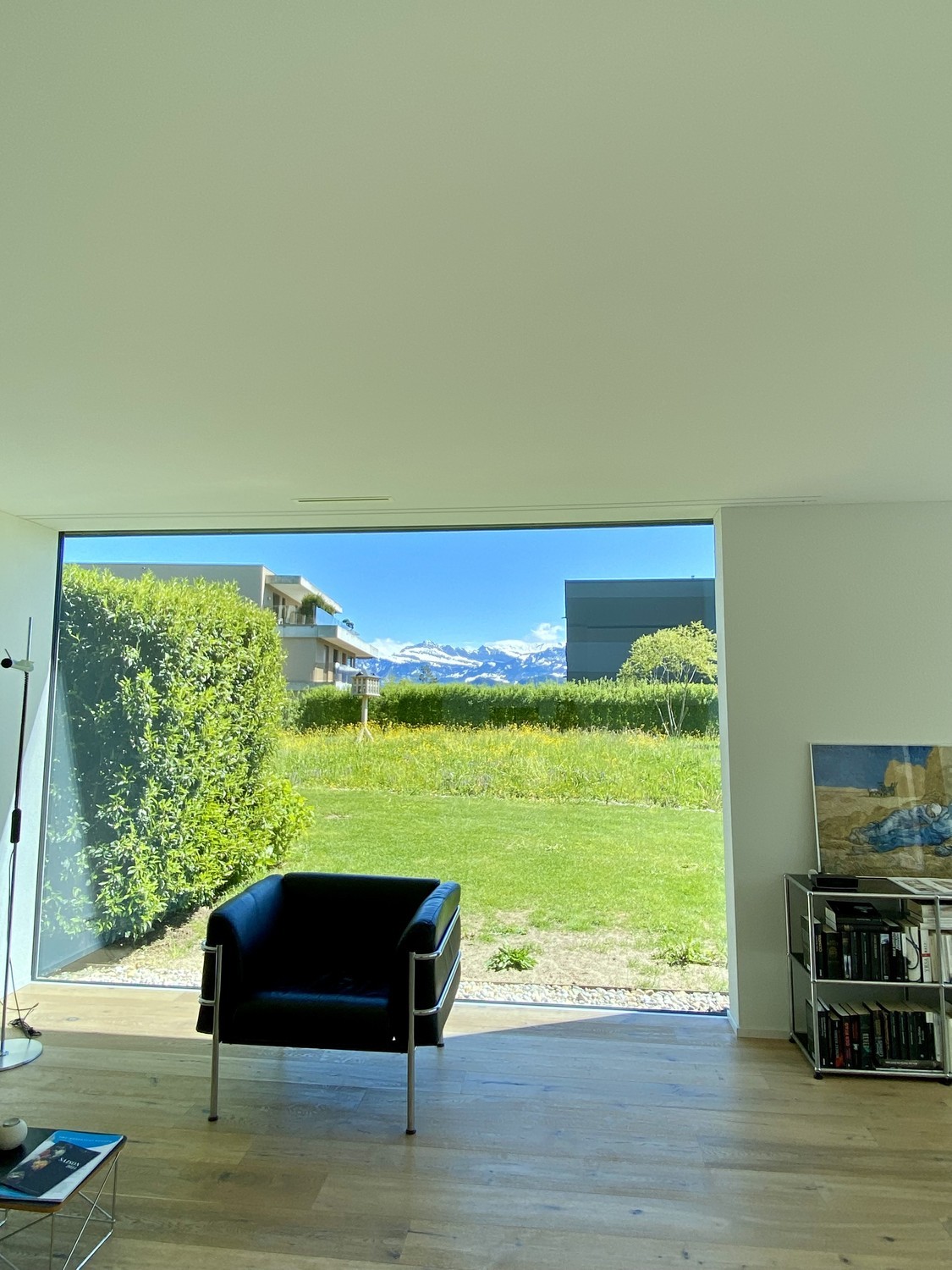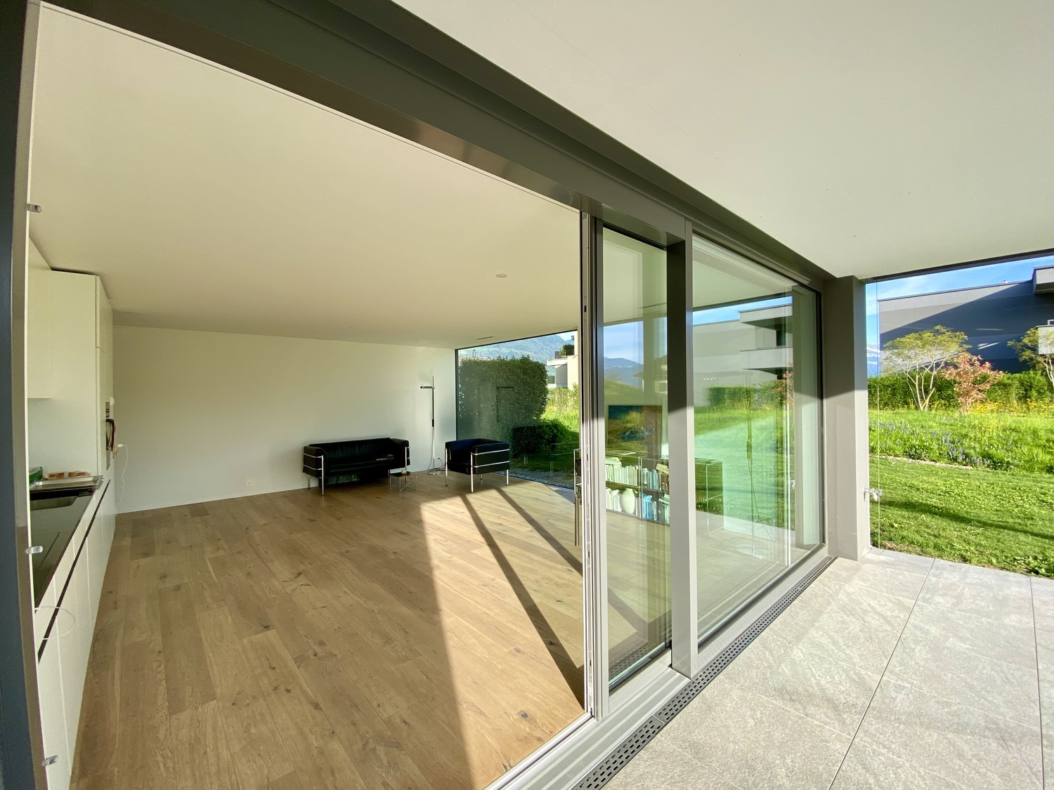 - moderne, grosse & helle Wohnung mit Glasfronten, Parkettböden und riesigem Garten (181 m2) im der steuergünstigen und privilegierten Gemeinde Meggen