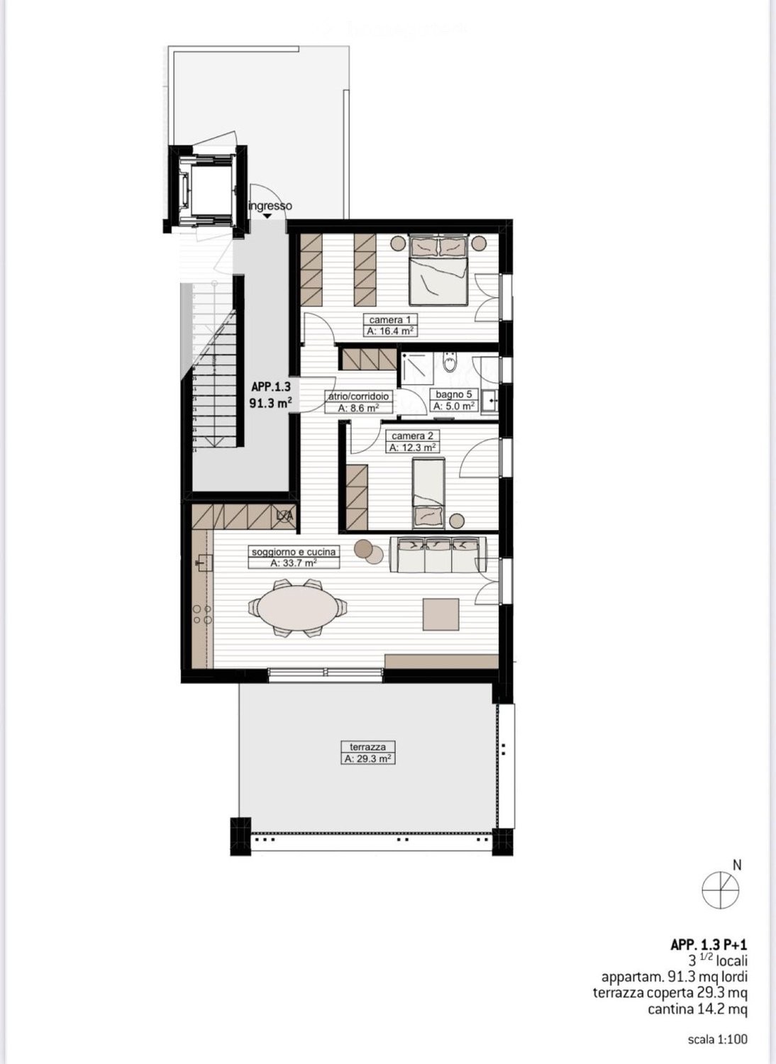 A Bioggio, in zona tranquilla e vicina alla natura, affittiamo in prima locazione un appartamento composto da 3.5 locali di 90 m2 e 30 m2 di terrazza coperta, edificio di nuova realizzazione.