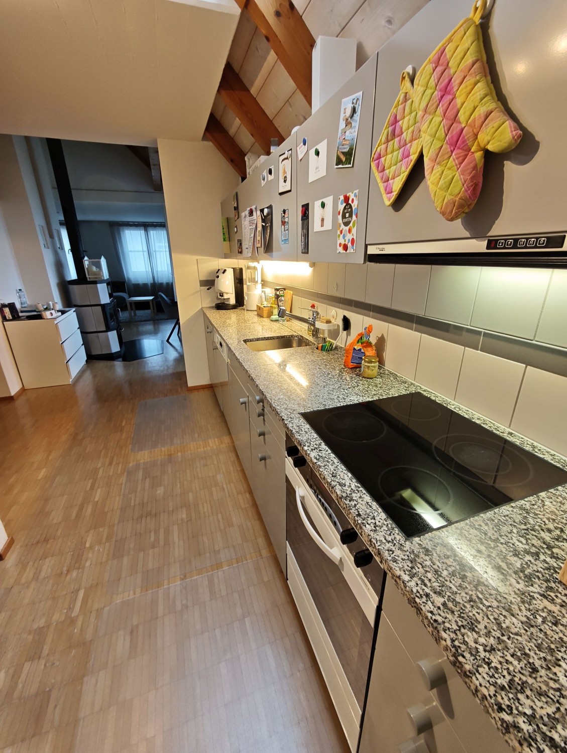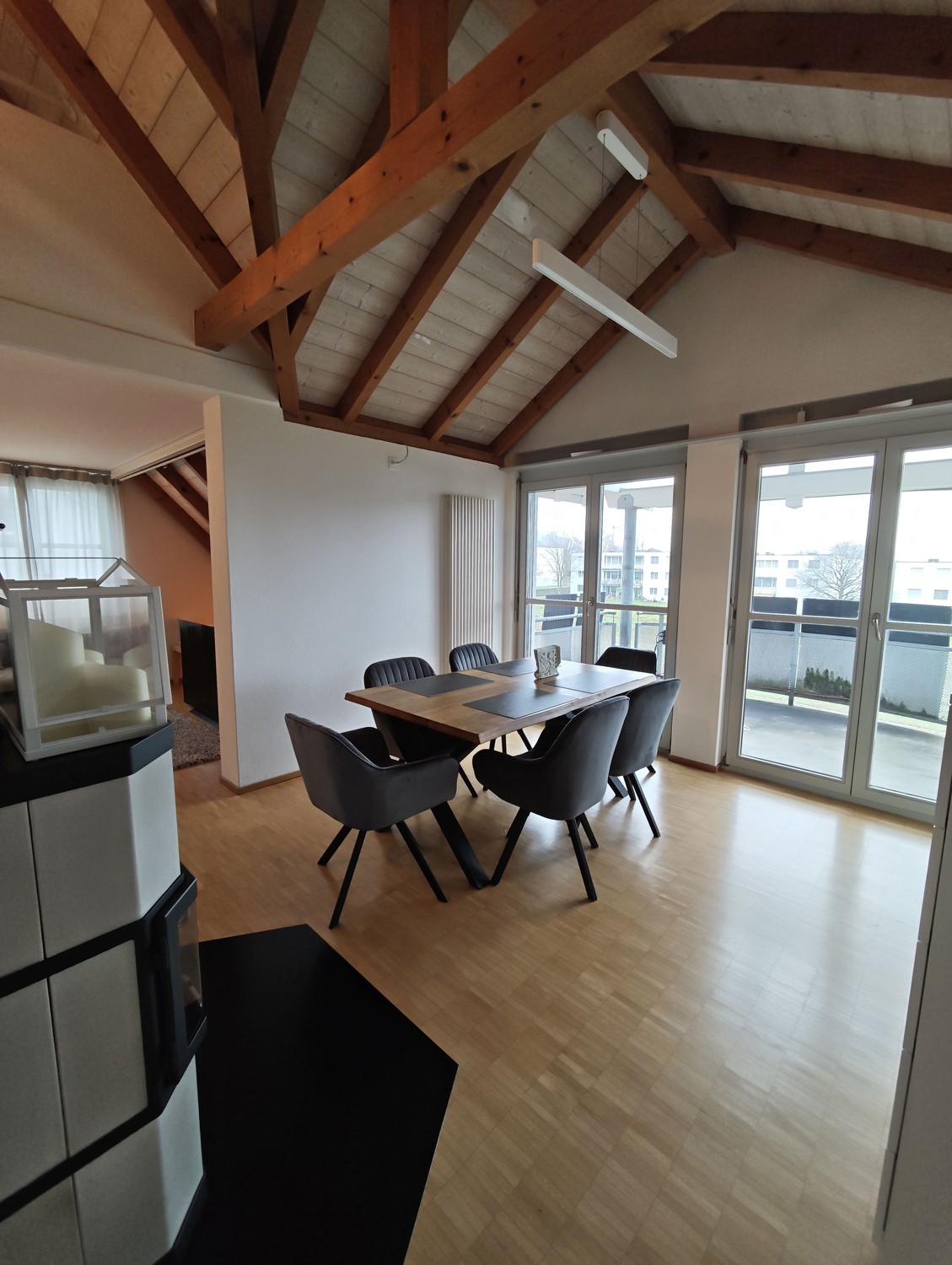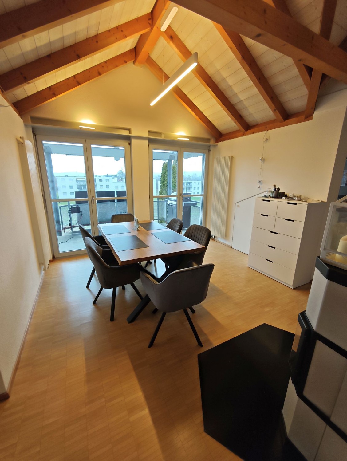 Diese wunderschöne, lichtdurchflutete 4.5-Zimmer-Maisonette-Wohnung überzeugt mit hohen Räumen, sichtbaren Holzbalken und einem warmen, gemütlichen Wohngefühl. Der grosszügige Grundriss, die moderne Ausstattung und der Balkon mit herrlicher Aussicht ins Grüne bieten idealen Wohnkomfort für Paare und Familien.