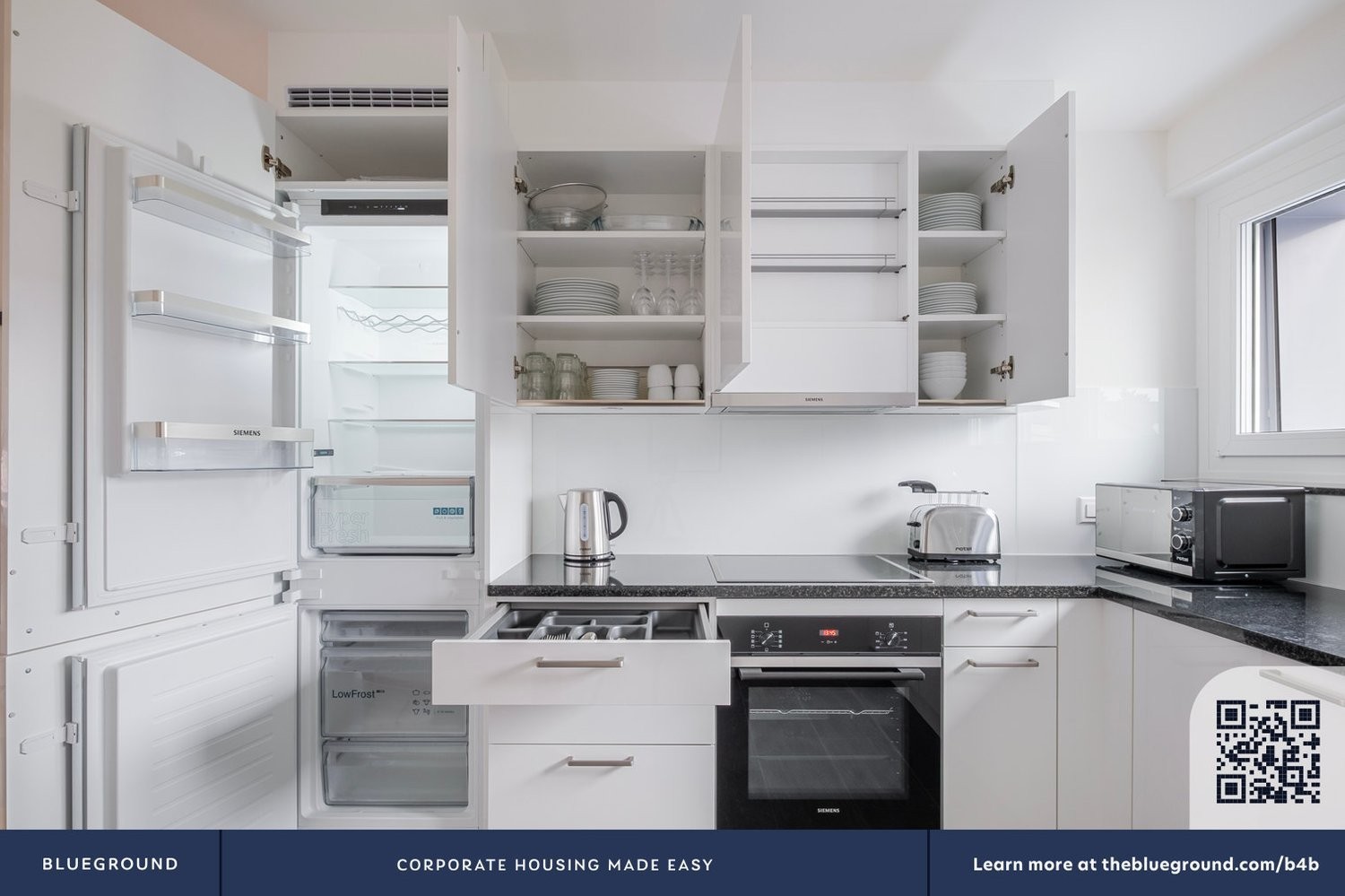 Während Ihres Aufenthalts haben Sie über die Blueground-App Zugriff auf unser Customer Experience-Team. Sie können zusätzliche Reinigungsarbeiten planen, Wartungsanfragen einreichen und unsere Nachbarschaftempfehlungen mit nur wenigen Fingertipps anzeigen.