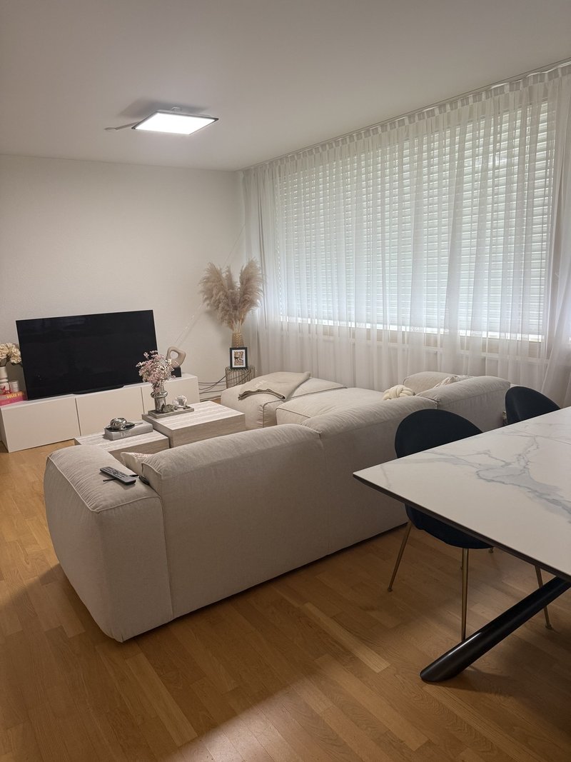 Wir (28 & 31, beide Frauen) wohnen in einer schönen 4.5-Zimmer-Wohnung.