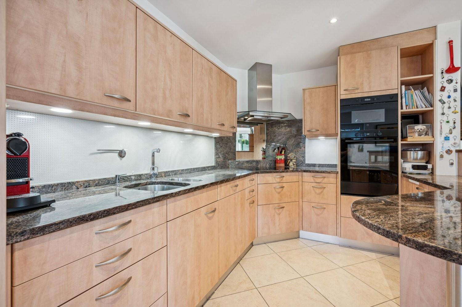 Moderne Küche mit Granitabdeckung und hochwertigen Geräten