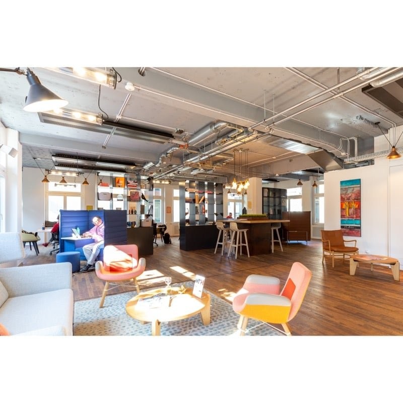 Dieses Angebot umfasst 10 m² möblierte private Bürofläche und 50 m² Gemeinschaftsflächen: Besprechungsräume, offener Coworking-Bereich, Lounge, Kaffeeküche und Empfangsbereich mit Büroausstattung.