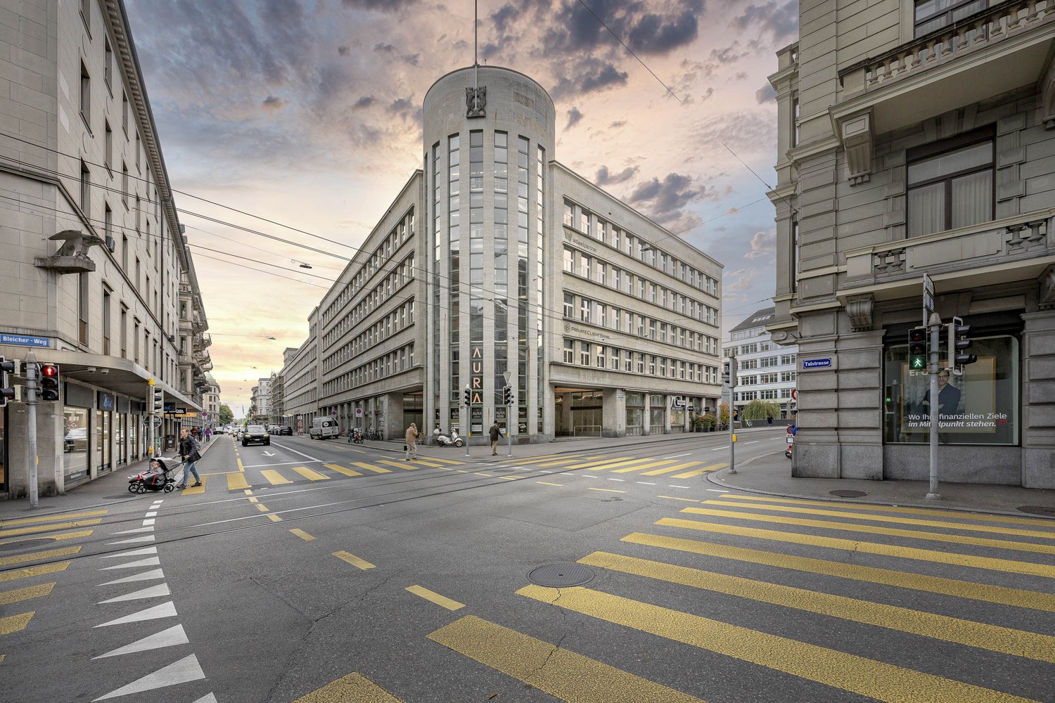 Grosszügige Schaufensterfronten Richtung Bleicherweg und Talstrasse – ideal für starke Markenpräsenz