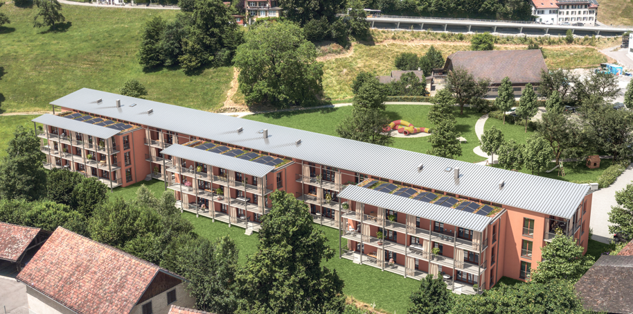 Zu verkaufen sind 2.5 und 3.5 und 5.5 Zimmerwohnungen.