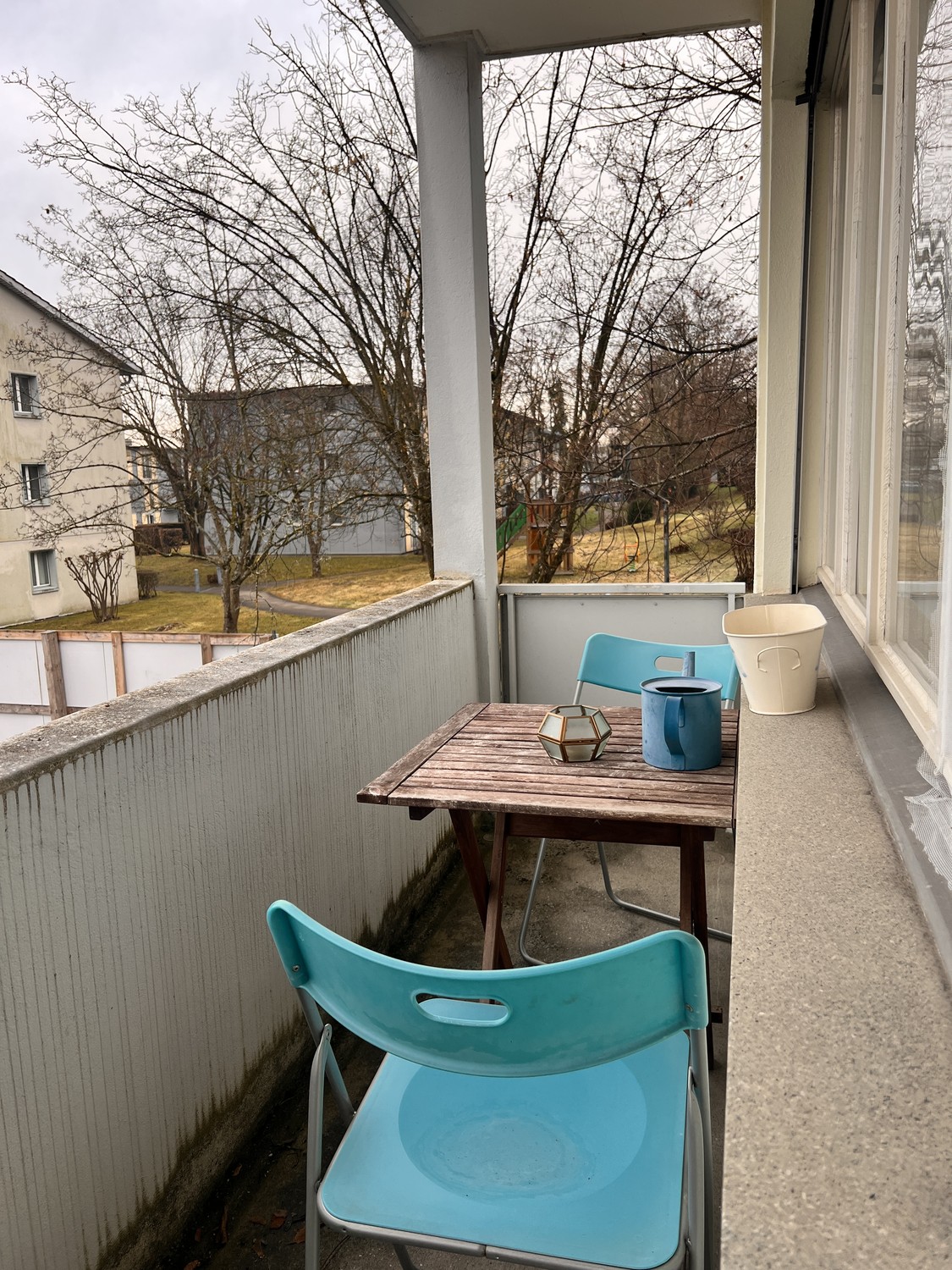 A bright, 18m² room with a private balcony is available in a friendly three-unit apartment in Zollikon. The lease is unlimited.