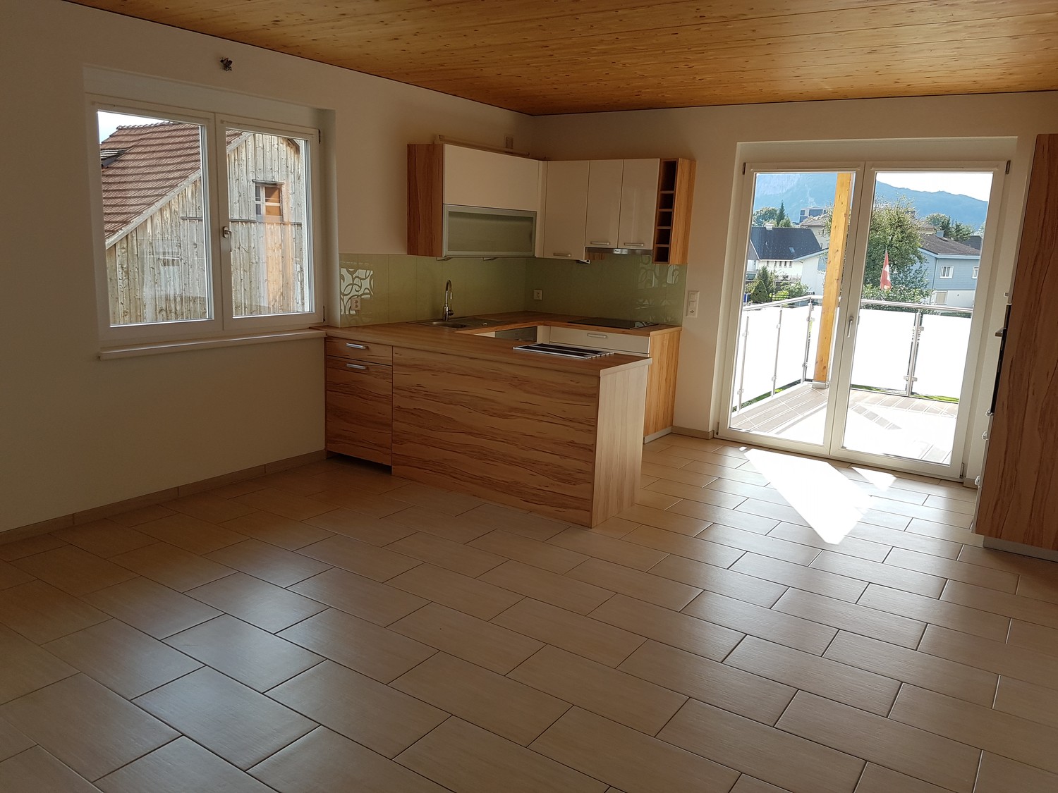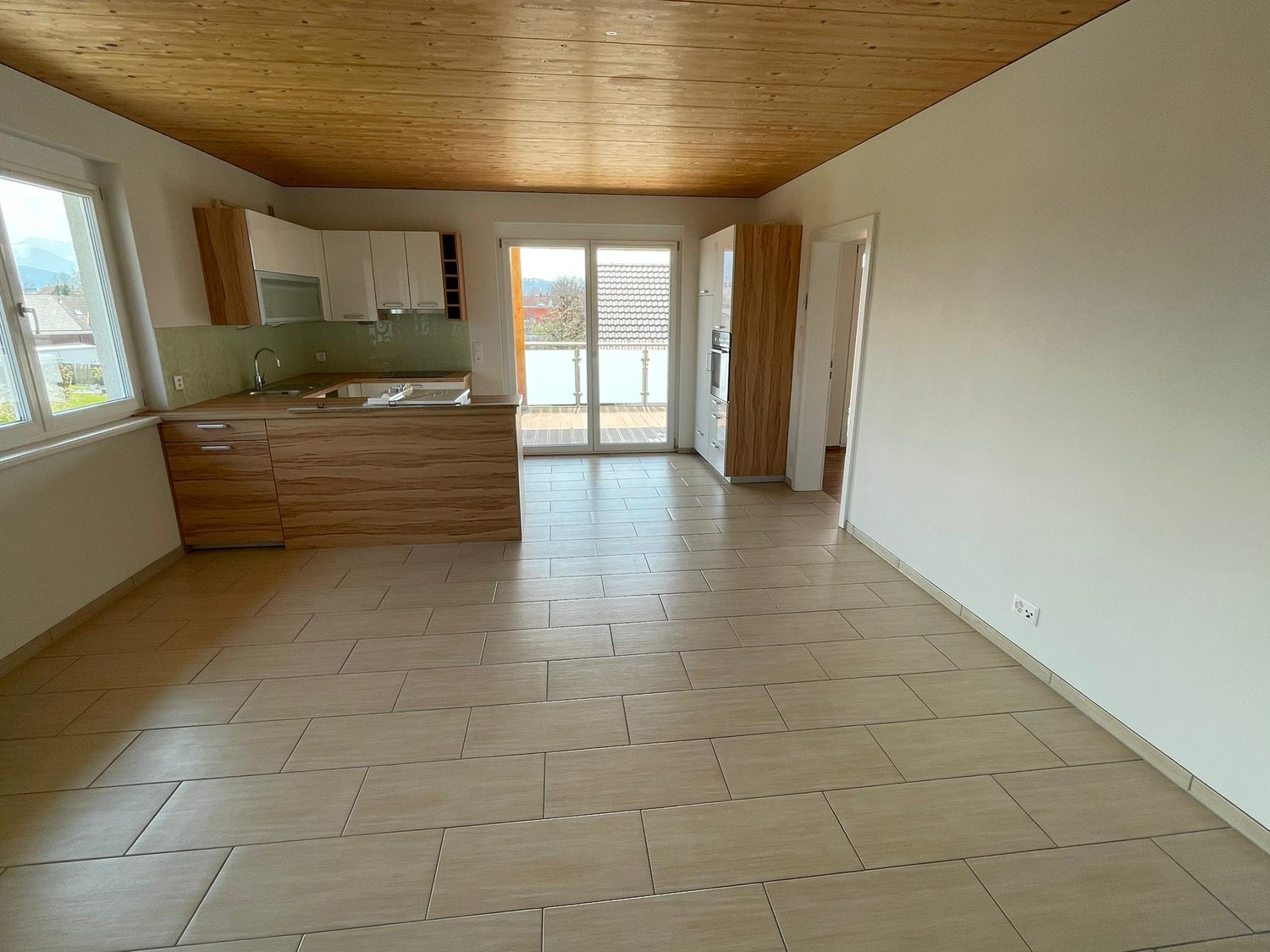 GrosszĂĽgiger Wohnbereich mit Zugang zum Balkon