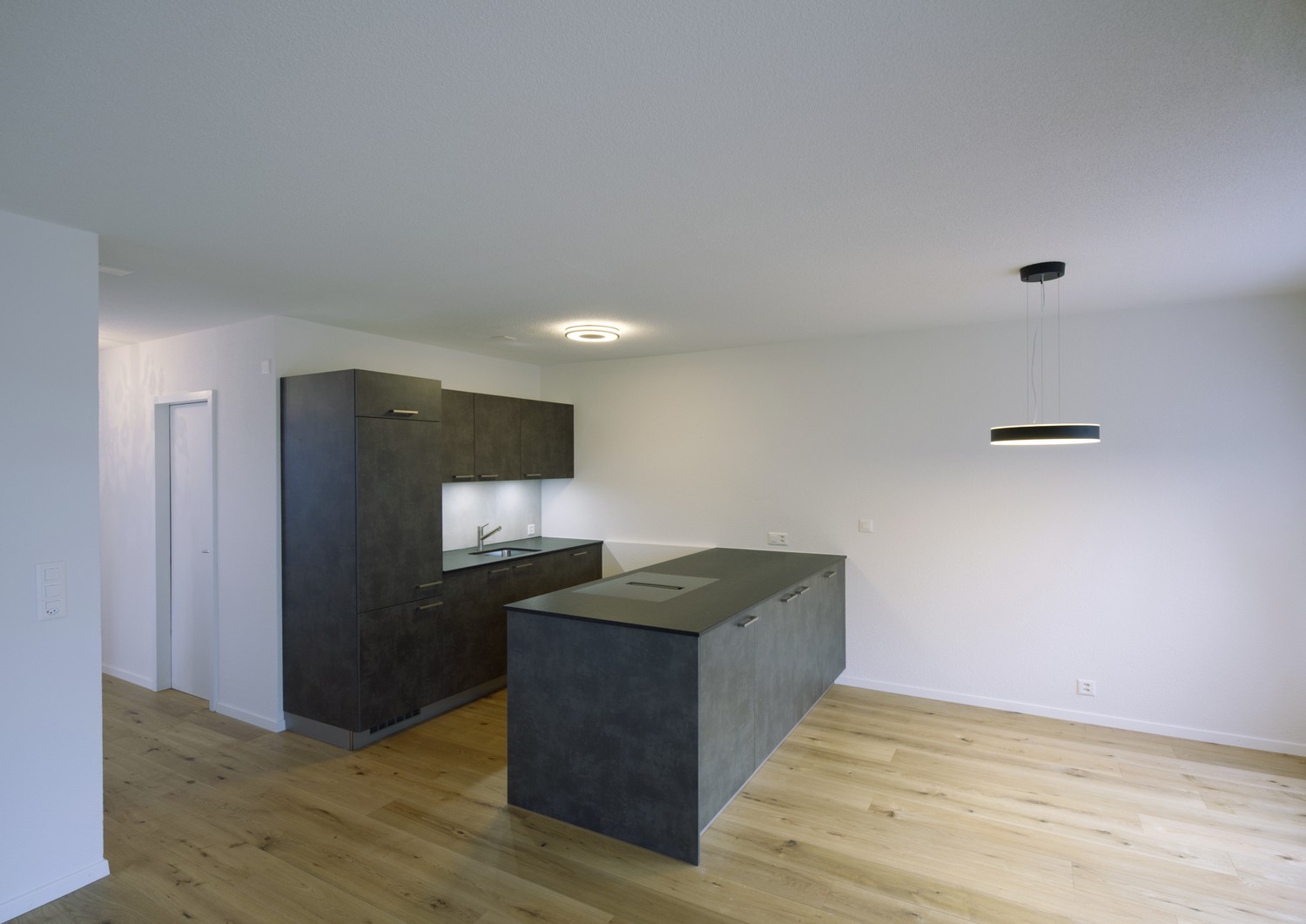 In allen Wohn- und Schlafräumen wird ein edler Holzboden verlegt, der eine warme und elegante Atmosphäre schafft. Die neue, hochwertige Küche bietet modernen Komfort und funktionales Design – ideal für alle, die gerne kochen und geniessen.